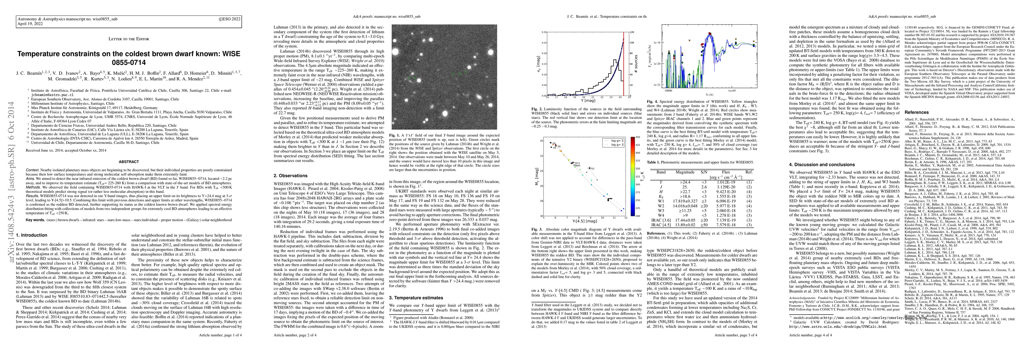 This paper aims to detect and refine the temperature estimate of the coldest brown dwarf, WISE 0855-0714, using near-infrared observations. The study confirms WISE 0855-0714 as the reddest and coldest brown dwarf known, with an effective temperature constrained to below 250 K.