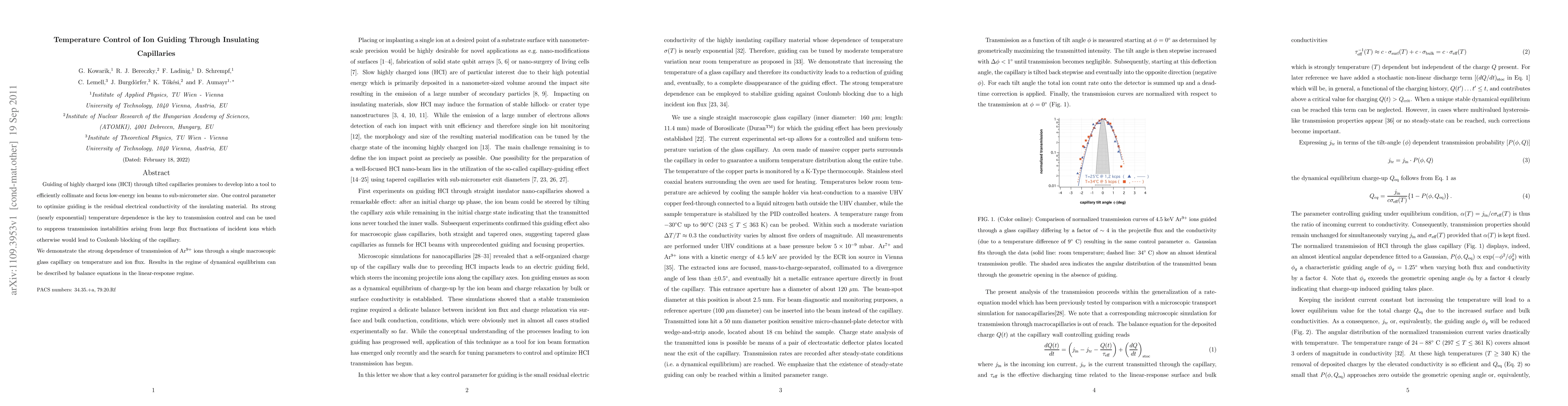 Researchers demonstrate that temperature control can regulate the transmission of highly charged ions through insulating capillaries, optimizing guiding for sub-micrometer ion beams.