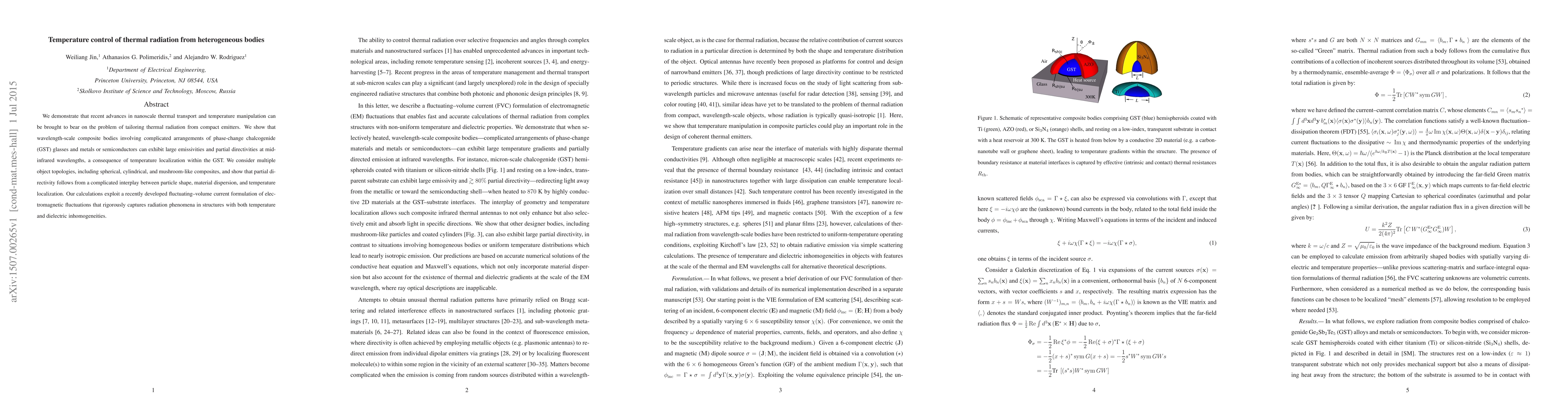 We demonstrate that recent advances in nanoscale thermal transport and temperature manipulation can be brought to bear on the problem of tailoring thermal radiation from compact emitters. We show that wavelength-scale composite bodies involving complicated arrangements of phase-change chalcogenide (GST) glasses and metals or semiconductors can exhibit large emissivities and partial directivities at mid-infrared wavelengths, a consequence of temperature localization within the GST. We consider multiple object topologies, including spherical, cylindrical, and mushroom-like composites, and show that partial directivity follows from a complicated interplay between particle shape, material dispersion, and temperature localization. Our calculations exploit a recently developed fluctuating-volume current formulation of electromagnetic fluctuations that rigorously captures radiation phenomena in structures with both temperature and dielectric inhomogeneities.