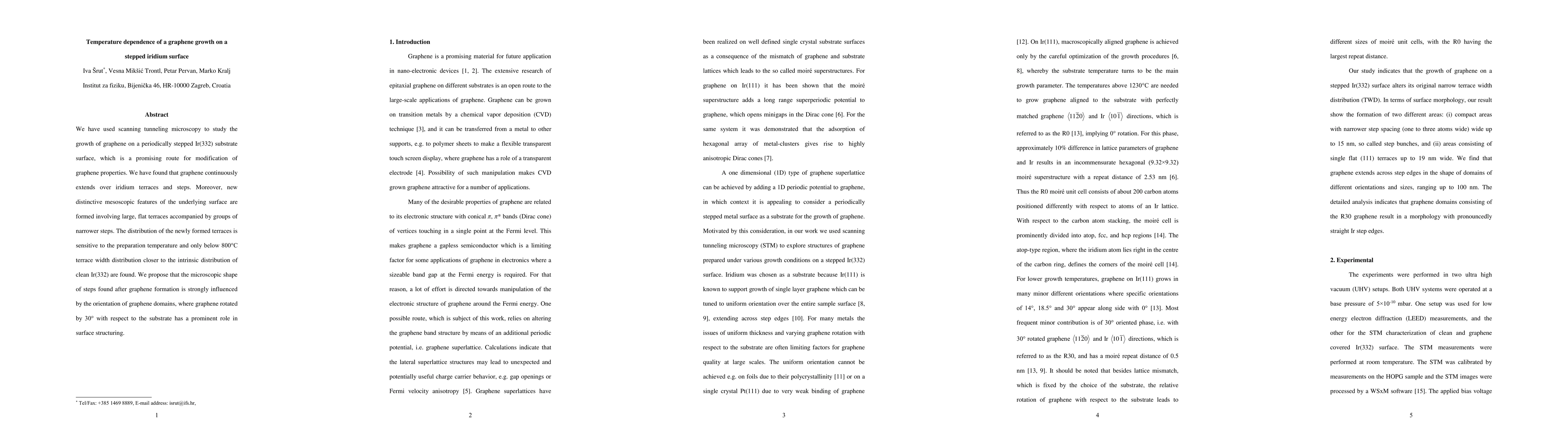 We have used scanning tunneling microscopy to study the growth of graphene on a periodically stepped Ir(332) substrate surface, which is a promising route for modification of graphene properties. We have found that graphene continuously extends over iridium terraces and steps. Moreover, new distinctive mesoscopic features of the underlying surface are formed involving large, flat terraces accompanied by groups of narrower steps. The distribution of the newly formed terraces is sensitive to the preparation temperature and only below 800{\deg}C terrace width distribution closer to the intrinsic distribution of clean Ir(332) are found. We propose that the microscopic shape of steps found after graphene formation is strongly influenced by the orientation of graphene domains, where graphene rotated by 30{\deg} with respect to the substrate has a prominent role in surface structuring.