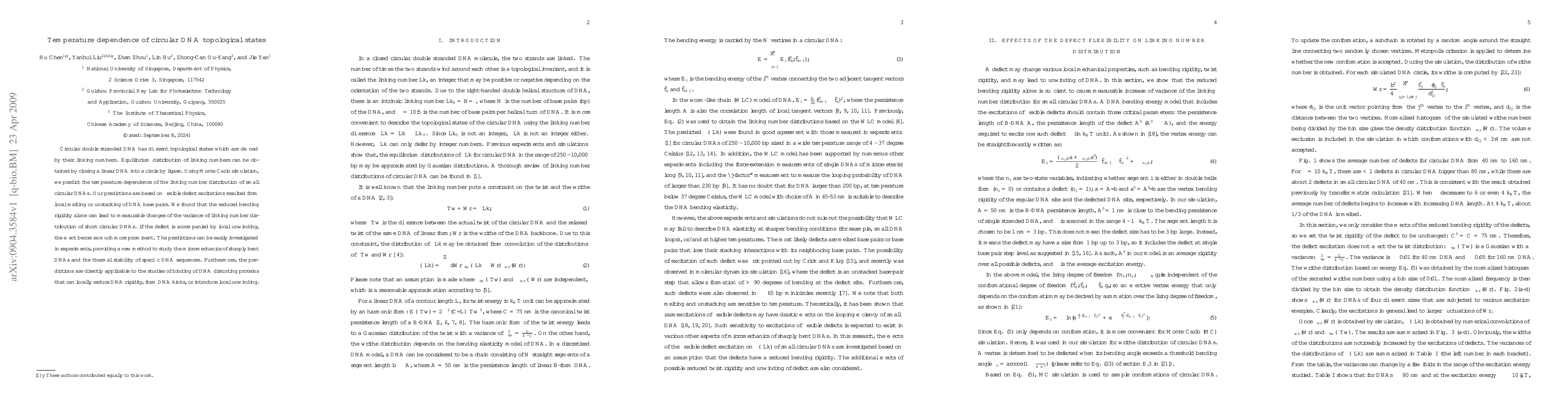This paper uses Monte Carlo simulations to predict how temperature affects the linking number distribution of small circular DNAs, revealing that reduced bending rigidity and local unwinding significantly influence these distributions. The findings offer a new experimental approach to study DNA micromechanics and thermal stability, and are relevant for understanding DNA-protein interactions.