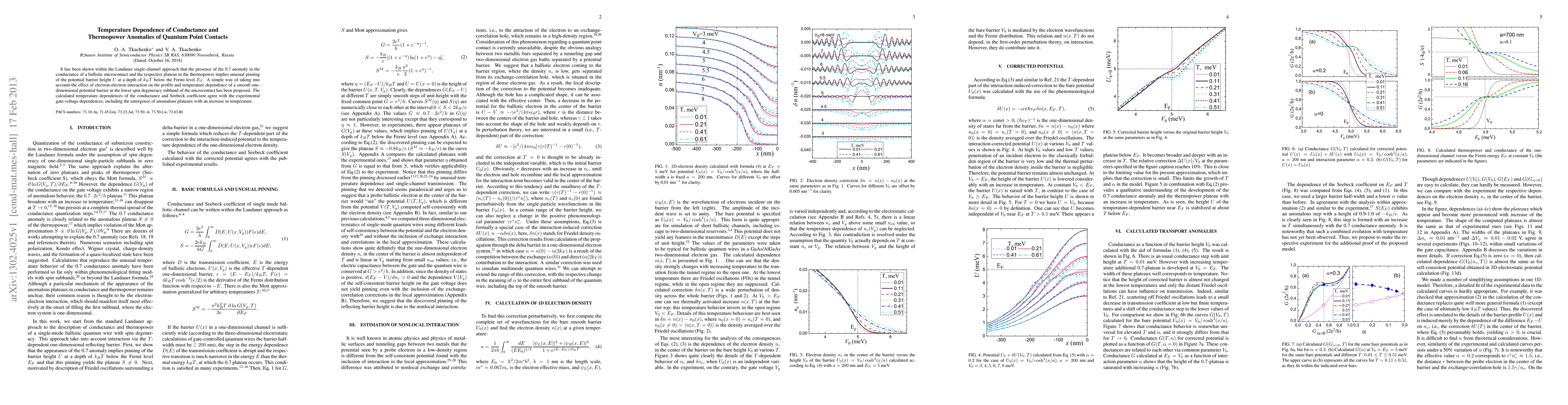 It has been shown within the Landauer single-channel approach that the presence of the 0.7 anomaly in the conductance of a ballistic microcontact and the respective plateau in the thermopower implies unusual pinning of the potential barrier height $U$ at a depth of $k_BT$ below the Fermi level $E_F$. A simple way of taking into account the effect of electron-electron interaction on the profile and temperature dependence of a smooth one-dimensional potential barrier in the lower spin degeneracy subband of the microcontact has been proposed. The calculated temperature dependences of the conductance and Seebeck coefficient agree with the experimental gate-voltage dependences, including the emergence of anomalous plateaux with an increase in temperature.