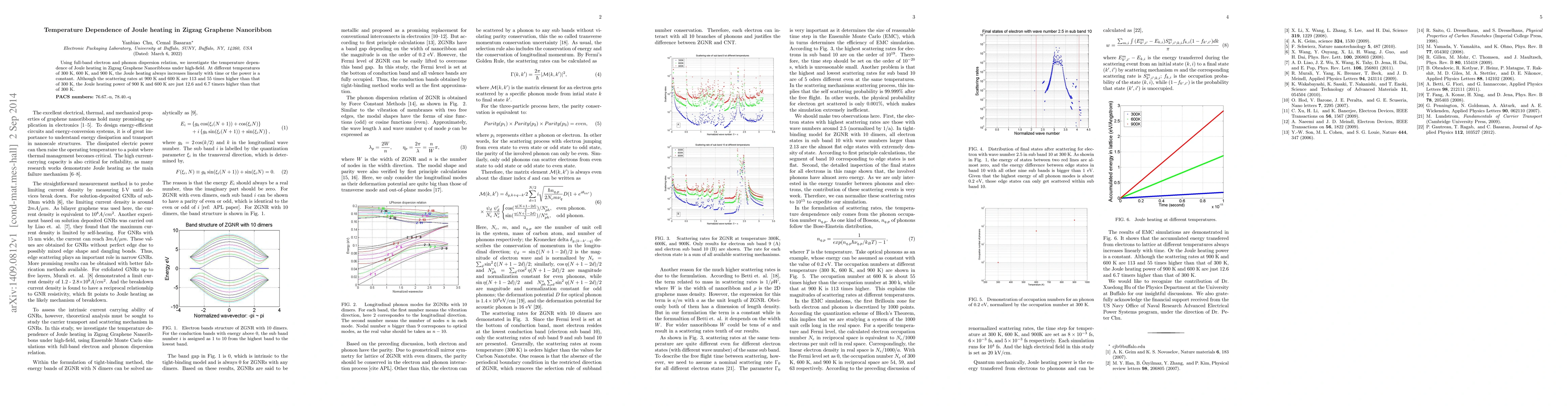 Using full-band electron and phonon dispersion relation, we investigate the temperature dependence of Joule heating in Zigzag Graphene Nanoribbons under high-field. At different temperatures of 300 K, 600 K, and 900 K, the Joule heating always increases linearly with time or the power is a constant. Although the scattering rates at 900 K and 600 K are 113 and 55 times higher than that of 300 K, the Joule heating power of 900 K and 600 K are just 12.6 and 6.7 timers higher than that of 300 K.