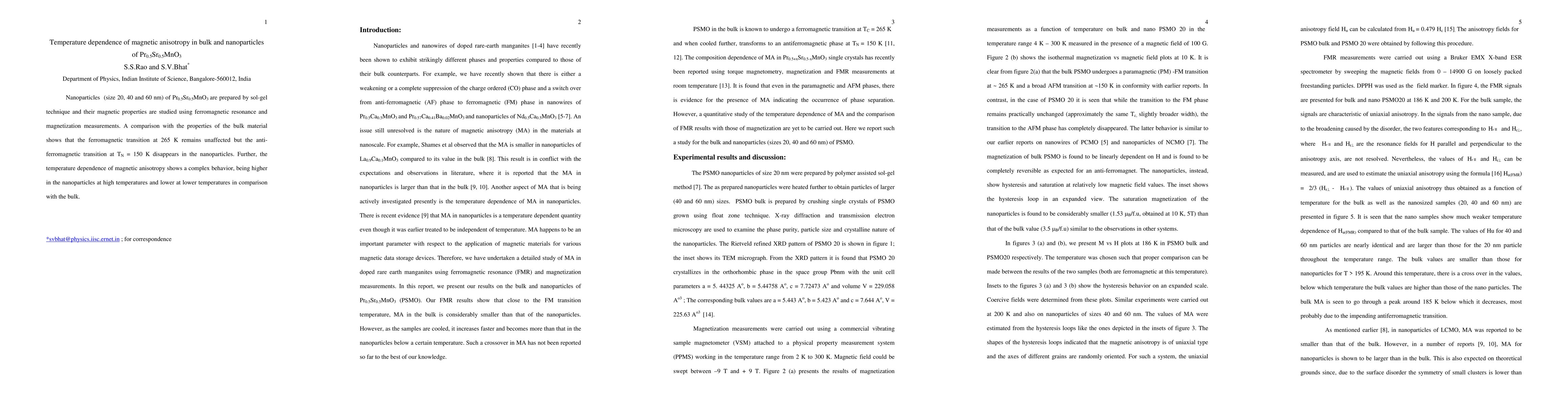 This study investigates the temperature dependence of magnetic anisotropy in Pr_0.5Sr_0.5MnO_3 nanoparticles and bulk material, finding that while the ferromagnetic transition remains unchanged, the anti-ferromagnetic transition vanishes in nanoparticles. The magnetic anisotropy is higher in nanoparticles at high temperatures but lower at lower temperatures compared to the bulk.