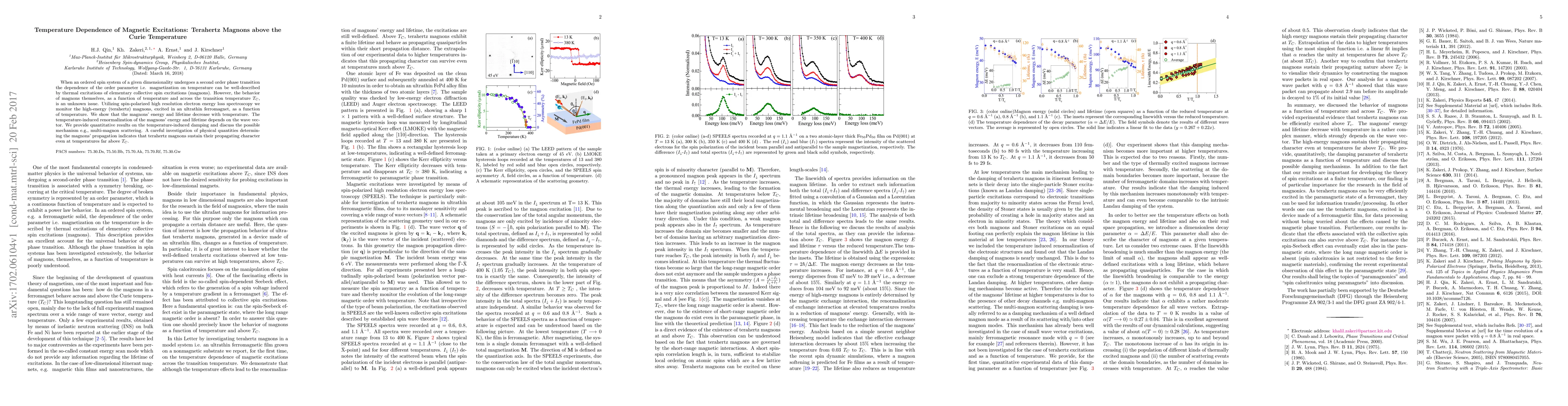 This research uses spin-polarized high-resolution electron energy loss spectroscopy to study terahertz magnons in ultrathin ferromagnets. It reveals that magnons' energy and lifetime decrease with temperature, with renormalization varying by wave vector. The study finds magnons retain propagation above the Curie temperature, suggesting multi-magnon scattering as a possible damping mechanism.