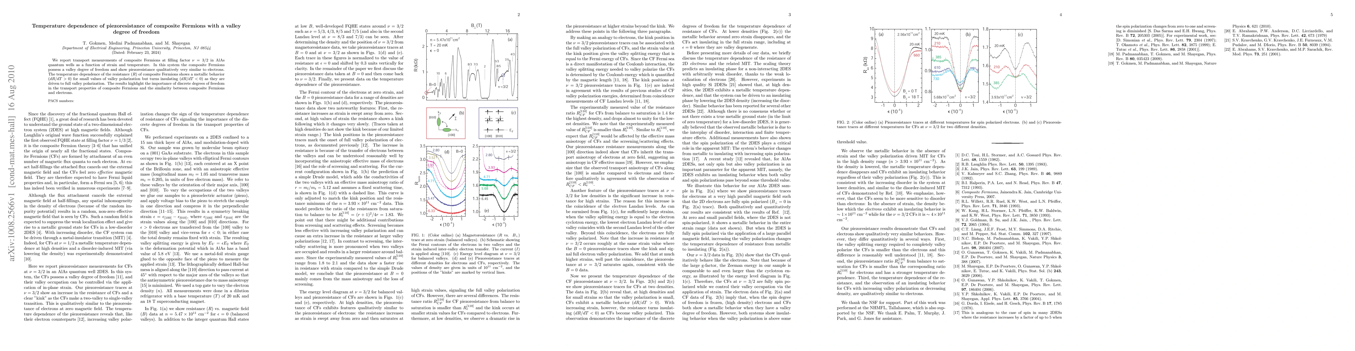 We report transport measurements of composite Fermions at filling factor $\nu=3/2$ in AlAs quantum wells as a function of strain and temperature. In this system the composite Fermions possess a valley degree of freedom and show piezoresistance qualitatively very similar to electrons. The temperature dependence of the resistance (R) of composite Fermions shows a metallic behavior (dR/dT > 0) for small values of valley polarization but turns insulating (dR/dT < 0) as they are driven to full valley polarization. The results highlight the importance of discrete degrees of freedom in the transport properties of composite Fermions and the similarity between composite Fermions and electrons.