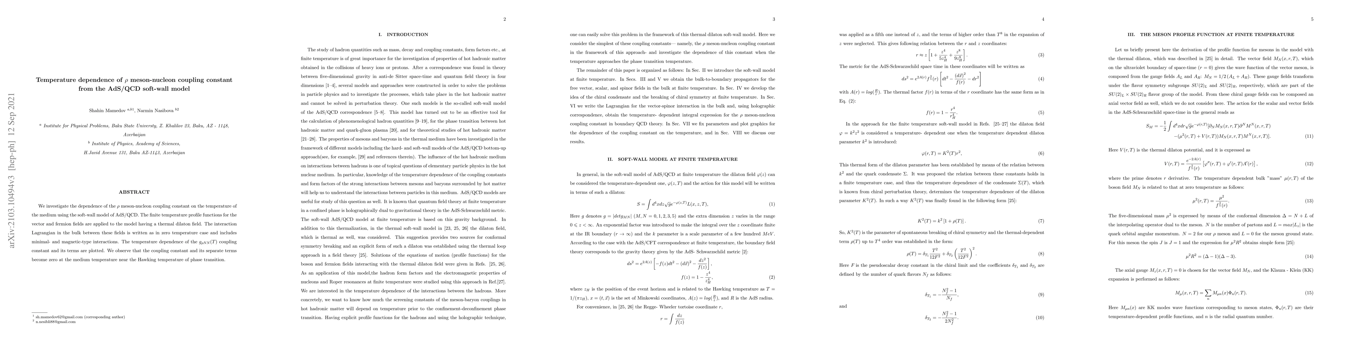 This study uses the AdS/QCD soft-wall model to analyze how the temperature affects the $\rho$ meson-nucleon coupling constant. The model incorporates thermal dilaton fields and minimal- and magnetic-type interactions, revealing that the coupling constant diminishes to zero near the critical temperature of phase transition.