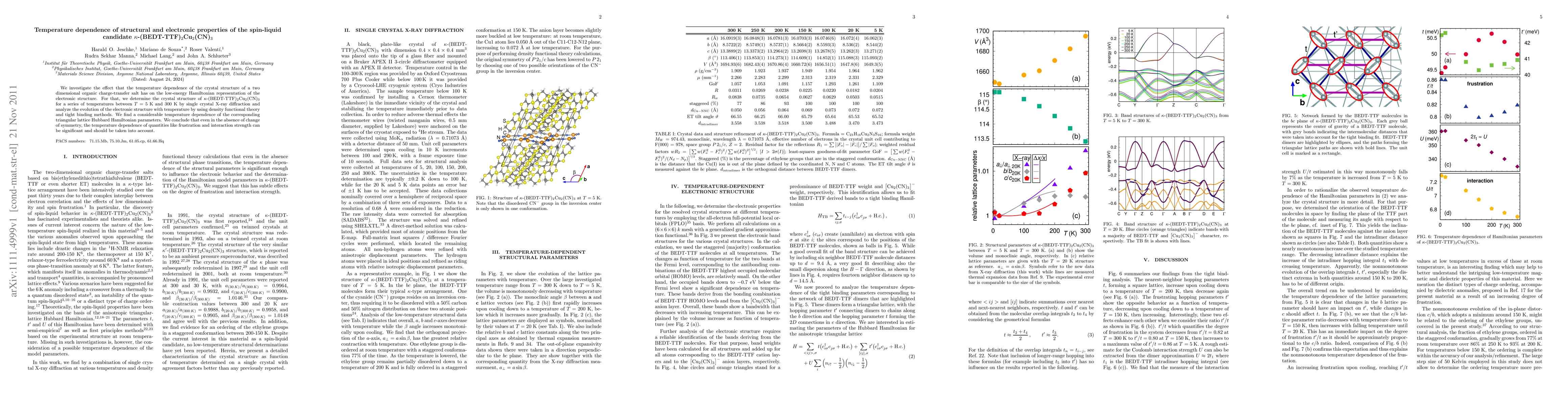 This study investigates the temperature-dependent structural and electronic properties of the spin-liquid candidate kappa-(BEDT-TTF)2Cu2(CN)3 using single crystal X-ray diffraction and computational methods. The research reveals significant temperature-dependent variations in the triangular lattice Hubbard Hamiltonian parameters, highlighting the importance of considering temperature effects on frustration and interaction strength.