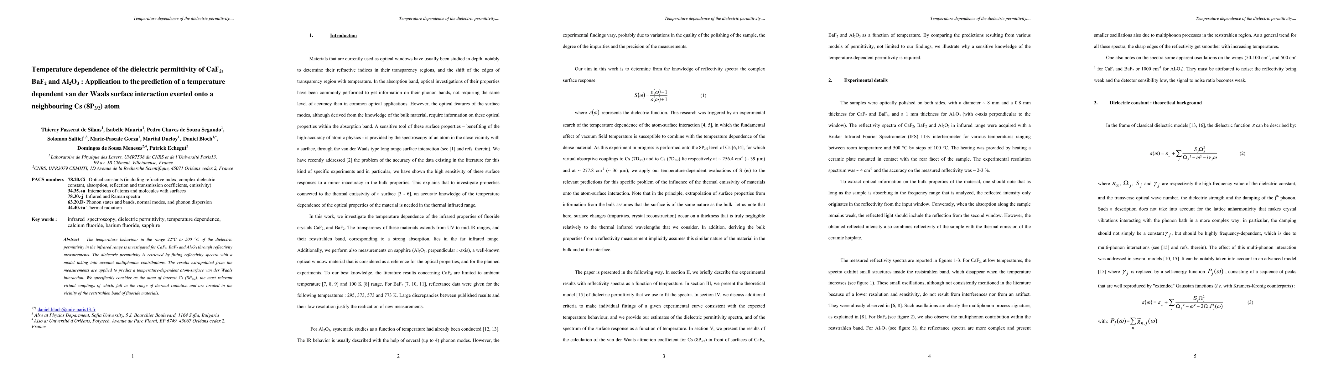 The temperature behaviour in the range 22\degree C to 500\degree C of the dielectric permittivity in the infrared range is investigated for CaF2, BaF2 and Al2O3 through reflectivity measurements. The dielectric permittivity is retrieved by fitting reflectivity spectra with a model taking into account multiphonon contributions. The results extrapolated from the measurements are applied to predict a temperature-dependent atom-surface van der Waals interaction. We specifically consider as the atom of interest Cs (8P3/2), the most relevant virtual couplings of which, fall in the range of thermal radiation and are located in the vicinity of the reststrahlen band of fluoride materials.