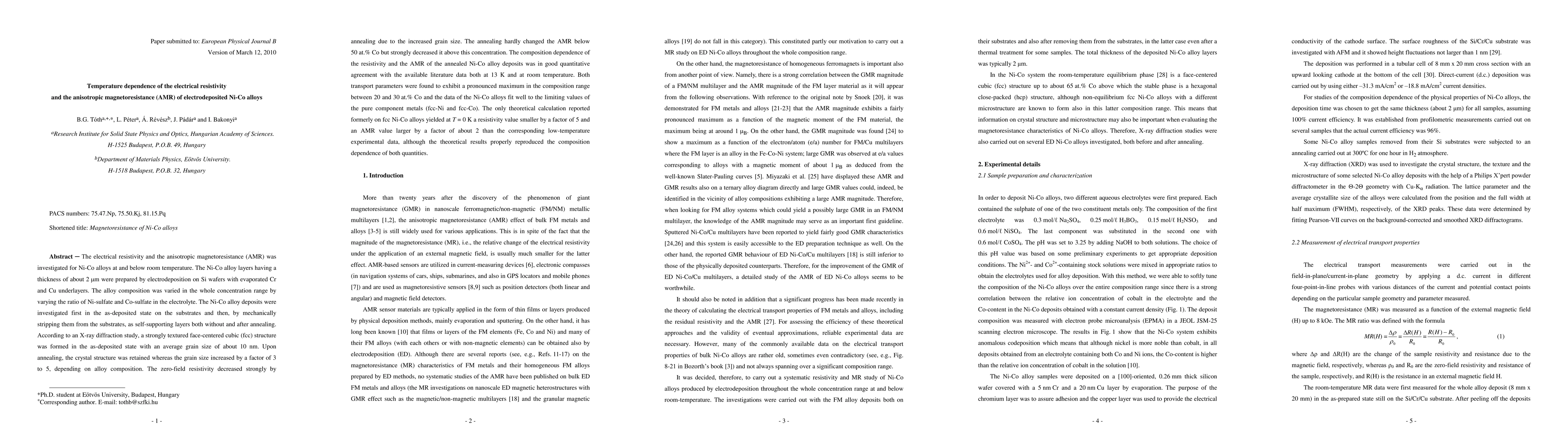 The study investigates NiCo alloy properties at room temperature, finding a strong decrease in electrical resistivity and anisotropic magnetoresistance with annealing, with maximum values between 20-30% Co concentration.