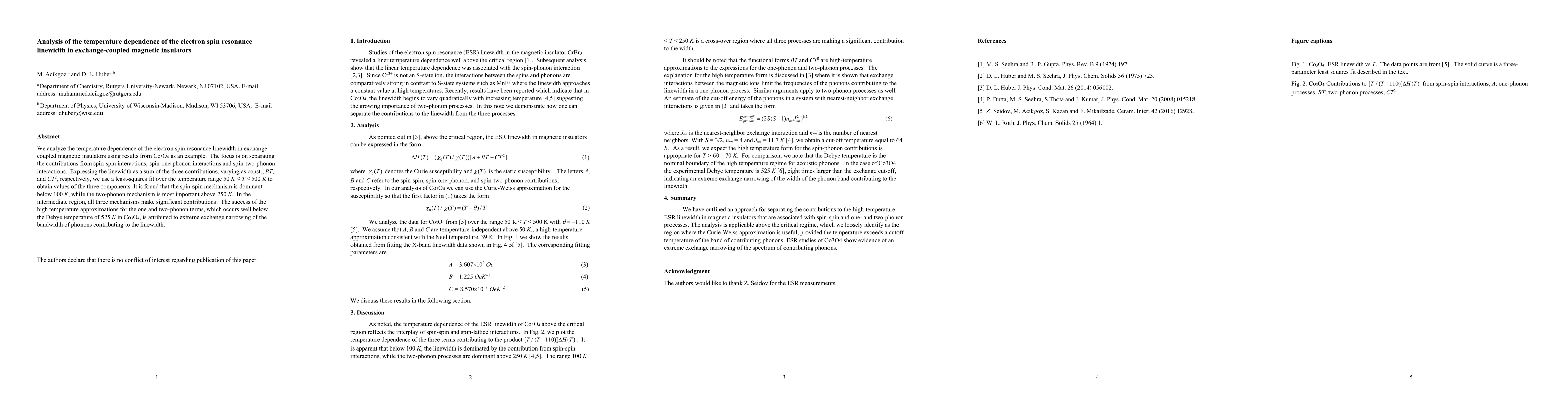 We analyze the temperature dependence of the electron spin resonance linewidth above the critical region in exchange-coupled magnetic insulators. The focus is on separating the contributions to the linewidth from spin-spin interactions, spin-one-phonon interactions and spin-two-phonon interactions at temperatures where the spin-spin term is constant and the one- and two-phonon terms vary as T and T^2, respectively. Taking Co3O4 as an example, we use a least squares fit over the temperature range 50 K < T < 500 K to obtain values of the three components. It is found that the spin-spin mechanism is dominant below 100 K, while the two-phonon mechanism is most important above 250 K. In the intermediate region, all three mechanisms make significant contributions.