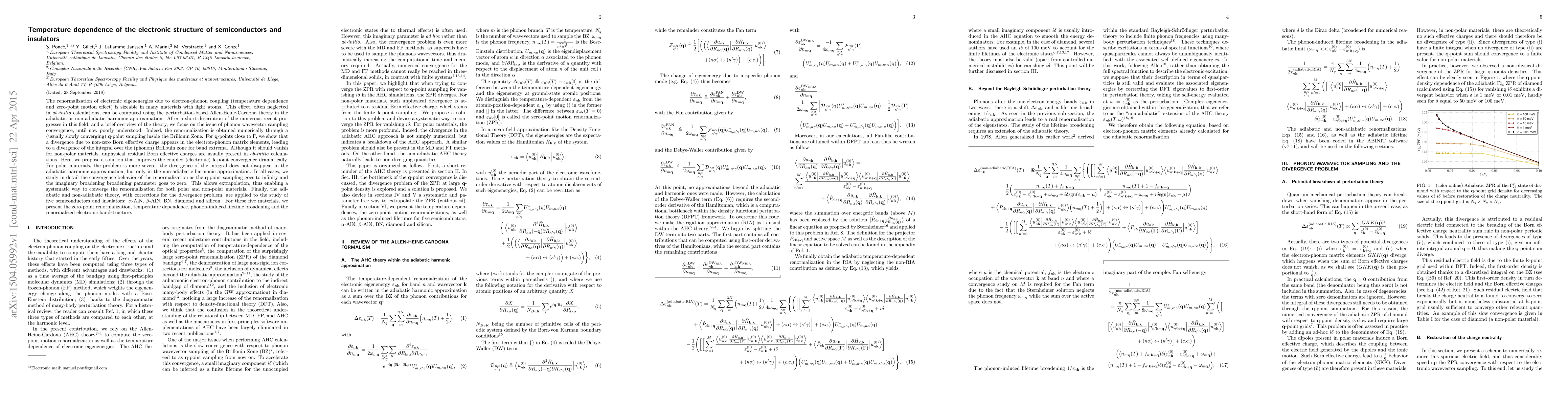 The renormalization of electronic eigenenergies due to electron-phonon coupling is sizable in many materials with light atoms. This effect, often neglected in ab-initio calculations, can be computed using the perturbation-based Allen-Heine-Cardona theory in the adiabatic or non-adiabatic harmonic approximation. After a short description of the numerous recent progresses in this field, and a brief overview of the theory, we focus on the issue of phonon wavevector sampling convergence, until now poorly understood. Indeed, the renormalization is obtained numerically through a q-point sampling inside the BZ. For q-points close to G, we show that a divergence due to non-zero Born effective charge appears in the electron-phonon matrix elements, leading to a divergence of the integral over the BZ for band extrema. Although it should vanish for non-polar materials, unphysical residual Born effective charges are usually present in ab-initio calculations. Here, we propose a solution that improves the coupled q-point convergence dramatically. For polar materials, the problem is more severe: the divergence of the integral does not disappear in the adiabatic harmonic approximation, but only in the non-adiabatic harmonic approximation. In all cases, we study in detail the convergence behavior of the renormalization as the q-point sampling goes to infinity and the imaginary broadening parameter goes to zero. This allows extrapolation, thus enabling a systematic way to converge the renormalization for both polar and non-polar materials. Finally, the adiabatic and non-adiabatic theory, with corrections for the divergence problem, are applied to the study of five semiconductors and insulators: a-AlN, b-AlN, BN, diamond and silicon. For these five materials, we present the zero-point renormalization, temperature dependence, phonon-induced lifetime broadening and the renormalized electronic bandstructure.