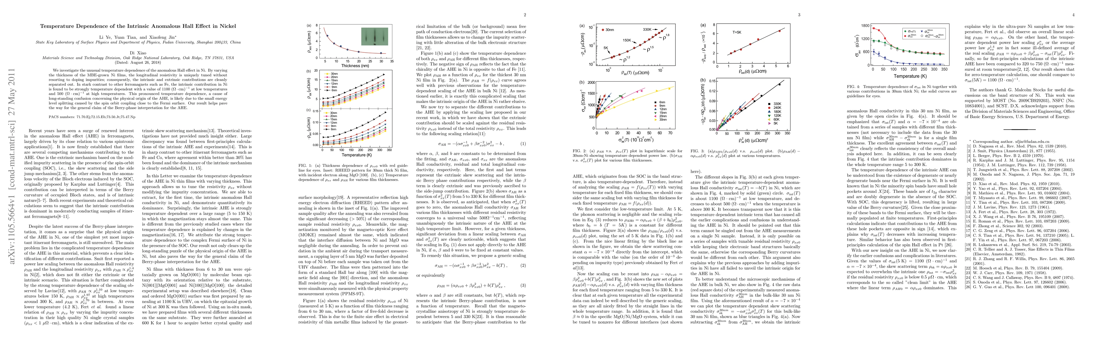 We investigate the unusual temperature dependence of the anomalous Hall effect in Ni. By varying the thickness of the MBE-grown Ni films, the longitudinal resistivity is uniquely tuned without resorting to doping impurities; consequently, the intrinsic and extrinsic contributions are cleanly separated out. In stark contrast to other ferromagnets such as Fe, the intrinsic contribution in Ni is found to be strongly temperature dependent with a value of 1100 (ohm*cm)^(-1) at low temperatures and 500 (ohm*cm)^(-1) at high temperatures. This pronounced temperature dependence, a cause of long-standing confusion concerning the physical origin of the AHE, is likely due to the small energy level splitting caused by the spin orbit coupling close to the Fermi surface. Our result helps pave the way for the general claim of the Berry-phase interpretation for the AHE.