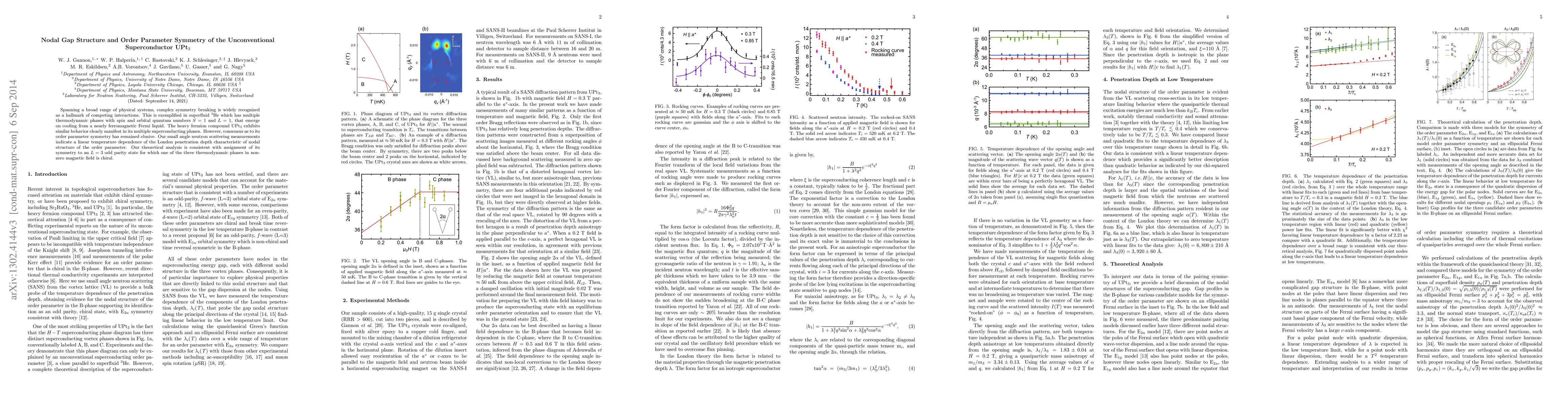 Spanning a broad range of physical systems, complex symmetry breaking is widely recognized as a hallmark of competing interactions. This is exemplified in superfluid $^3$He which has multiple thermodynamic phases with spin and orbital quantum numbers $S=1$ and $L=1$, that emerge on cooling from a nearly ferromagnetic Fermi liquid. The heavy fermion compound UPt$_3$ exhibits similar behavior clearly manifest in its multiple superconducting phases. However, consensus as to its order parameter symmetry has remained elusive. Our small angle neutron scattering measurements indicate a linear temperature dependence of the London penetration depth characteristic of nodal structure of the order parameter. Our theoretical analysis is consistent with assignment of its symmetry $L=3$ odd parity state for which one of the three thermodynamic phases in non-zero magnetic field is chiral.