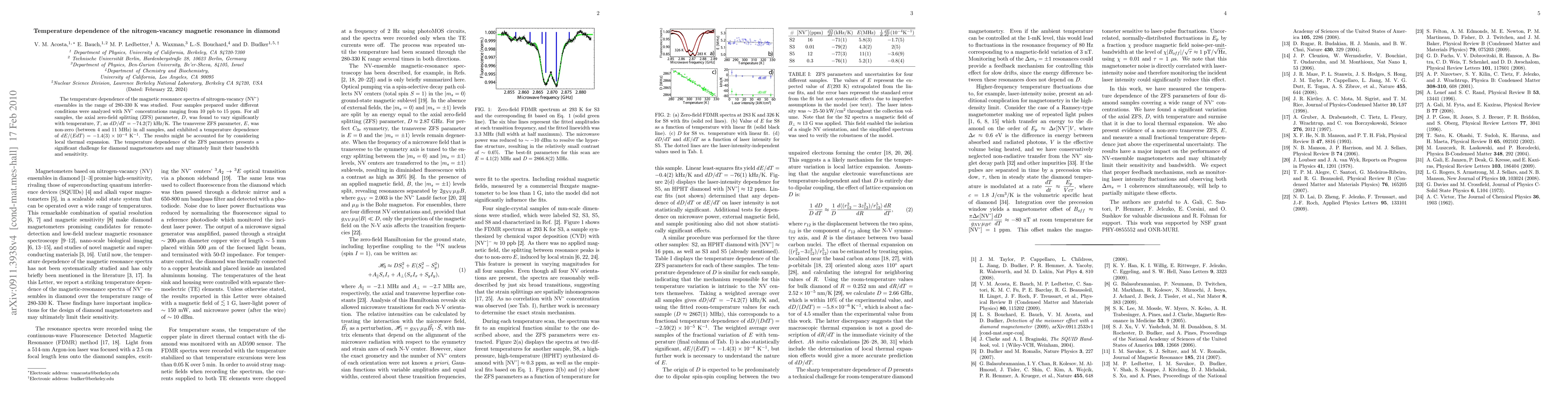 This study investigates the temperature dependence of nitrogen-vacancy (NV) magnetic resonance in diamond from 280-330 K, revealing significant variations in the axial zero-field splitting parameter D and a non-zero transverse zero-field splitting parameter E, with implications for the performance of room-temperature diamond magnetometers.
