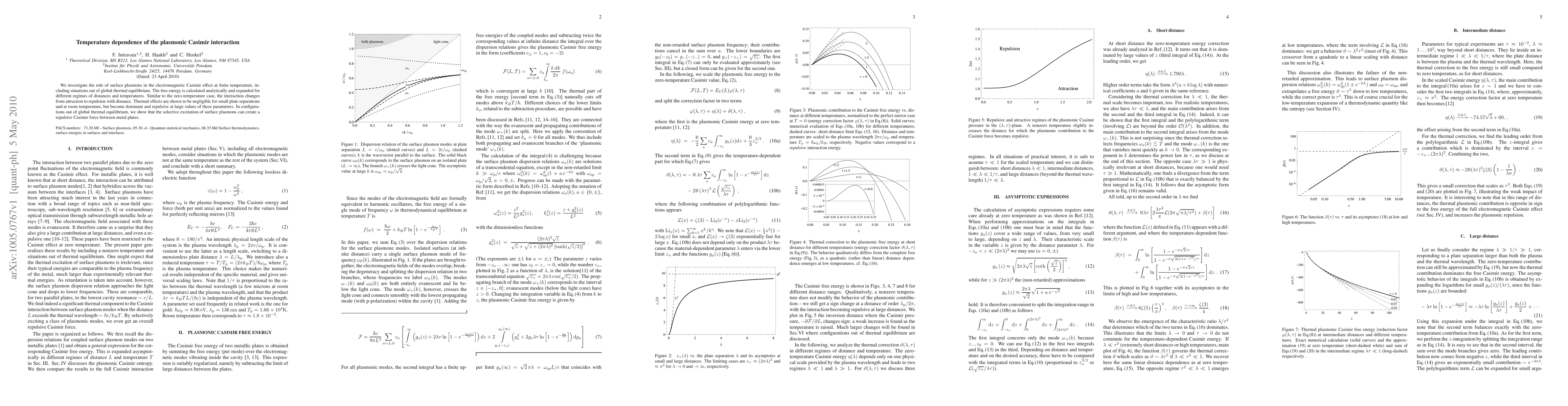 This paper examines how temperature influences the plasmonic Casimir interaction, revealing that thermal effects can change the interaction from attractive to repulsive with increasing distance and temperature. At small separations and room temperature, thermal effects are minimal, but they dominate at larger separations.
