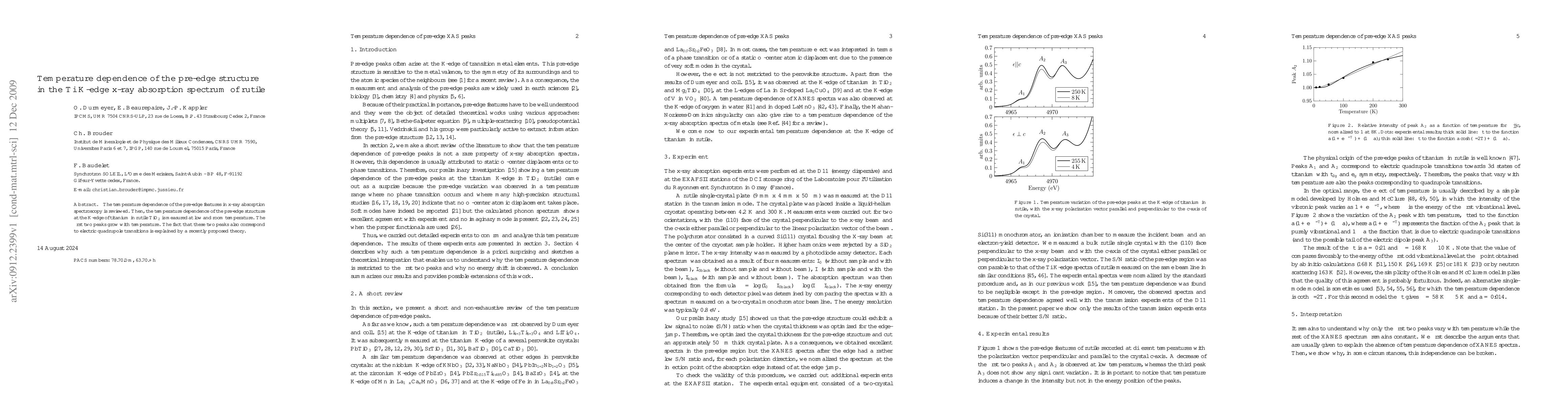 The temperature dependence of the pre-edge features in x-ray absorption spectroscopy is reviewed. Then, the temperature dependence of the pre-edge structure at the K-edge of titanium in rutile TiO2 is measured at low and room temperature. The first two peaks grow with temperature. The fact that these two peaks also correspond to electric quadrupole transitions is explained by a recently proposed theory.