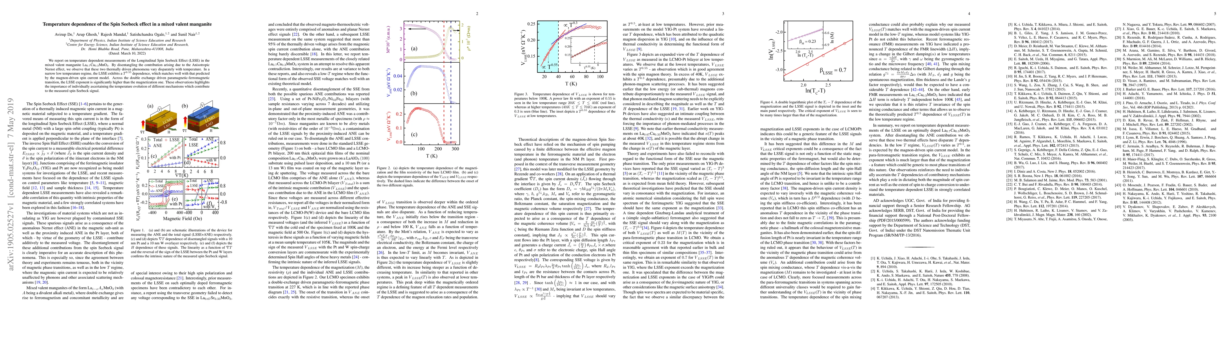 This paper investigates the temperature dependence of the Longitudinal Spin Seebeck Effect (LSSE) in La$_{0.7}$Ca$_{0.3}$MnO$_3$, revealing a $T^{0.55}$ dependence in a low-temperature regime consistent with magnon-driven models. The study highlights the distinct temperature variations between LSSE and the Anisotropic Nernst effect, emphasizing the need for detailed analysis of contributing mechanisms.