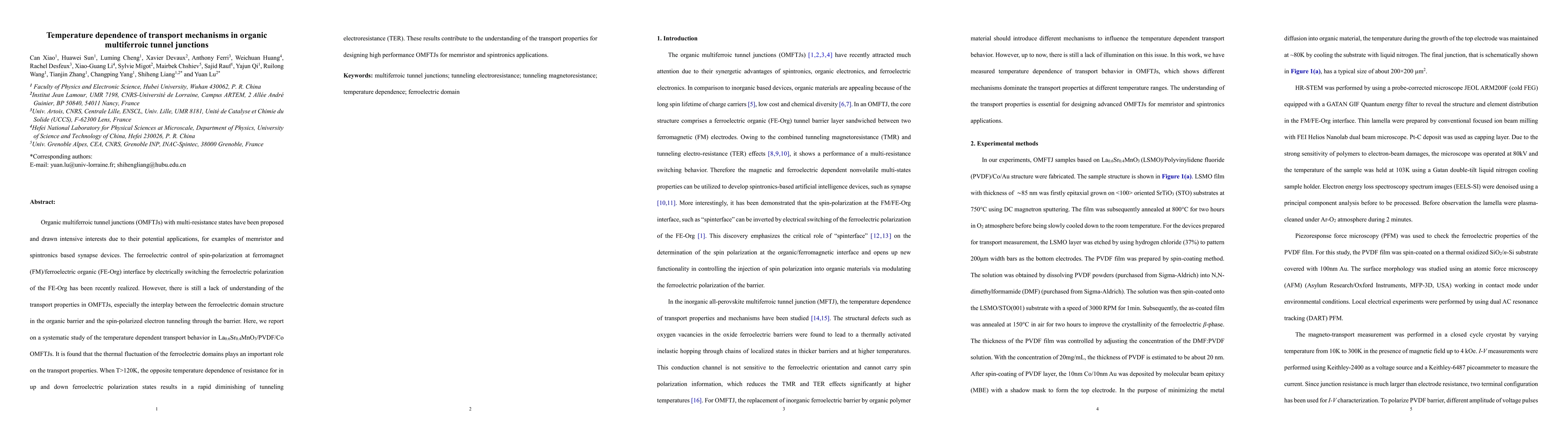This study investigates the temperature dependence of transport mechanisms in organic multiferroic tunnel junctions (OMFTJs), revealing that thermal fluctuations of ferroelectric domains significantly affect transport properties. At temperatures above 120K, differing resistance behaviors in up and down ferroelectric polarization states lead to a rapid decline in tunneling electroresistance (TER), enhancing the understanding for designing high-performance OMFTJs.