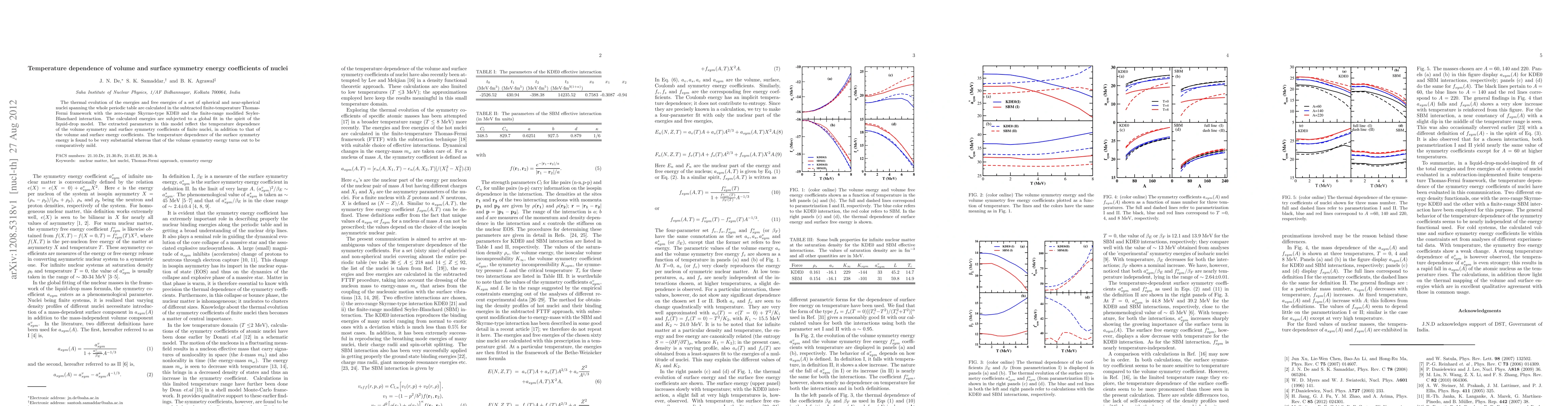 This study calculates the thermal evolution of nuclear energies using a finite-temperature Thomas-Fermi framework, extracting temperature-dependent coefficients for volume and surface symmetry energies. The research finds significant temperature dependence in surface symmetry energy, while volume symmetry energy shows comparatively mild dependence.