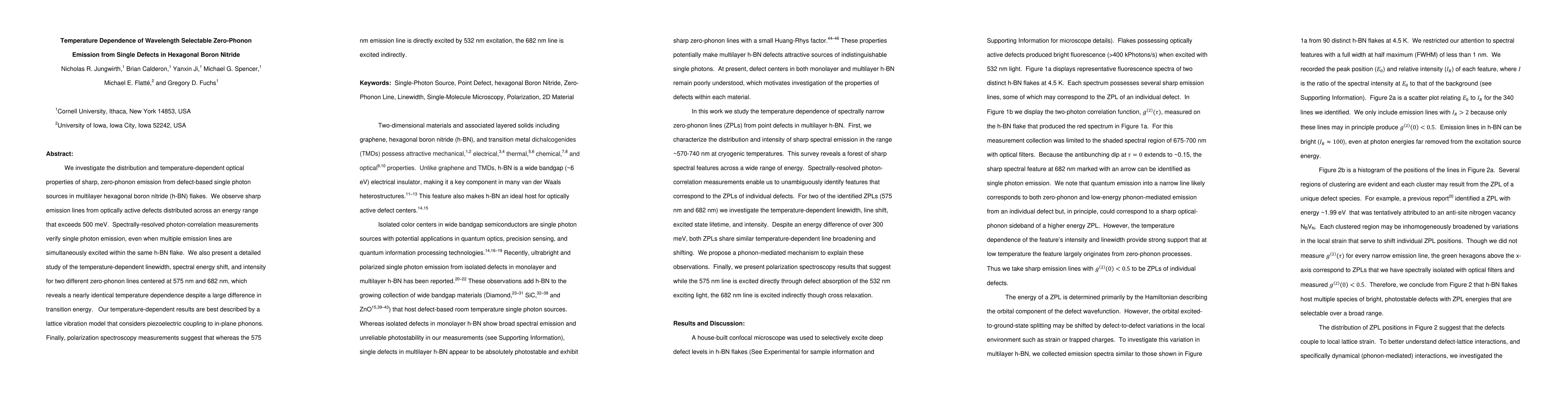 Researchers studied temperature-dependent optical properties of single photon sources in hexagonal boron nitride flakes, finding nearly identical temperature dependence despite large differences in transition energy.