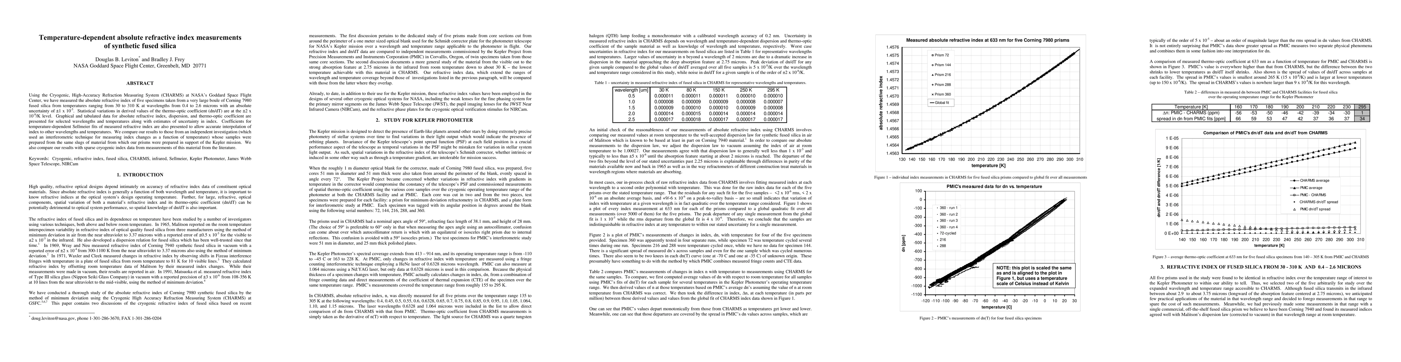 This study measures the absolute refractive index of synthetic fused silica over a temperature range of 30 to 310 K using a high-precision system, providing detailed data and Sellmeier coefficients for accurate interpolation. Comparisons with other investigations and literature data are also presented.