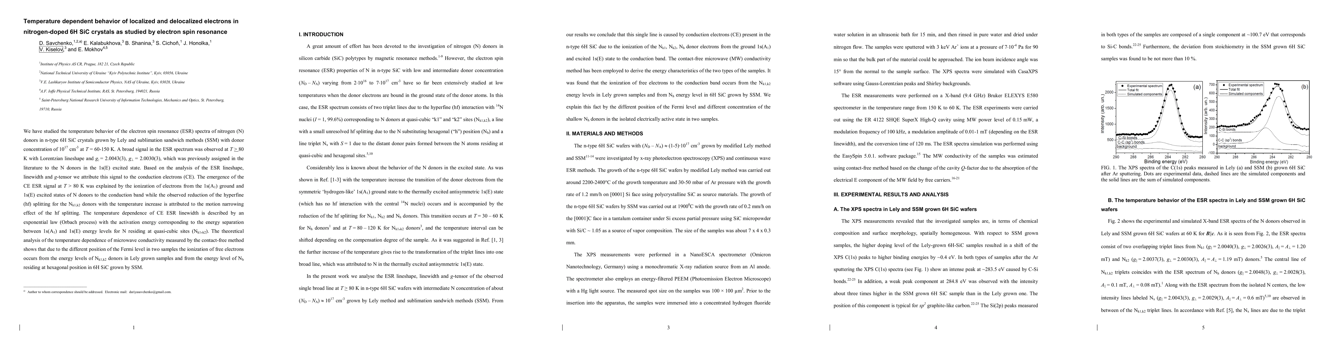 We have studied the temperature behavior of the electron spin resonance (ESR) spectra of nitrogen (N) donors in n-type 6H SiC crystals grown by Lely and sublimation sandwich methods (SSM) with donor concentration of 10^17 cm^(-3) at T=60-150 K. A broad signal in the ESR spectrum was observed at T>=80 K with Lorentzian lineshape and gpar=2.0043(3), gper=2.0030(3), which was previously assigned in the literature to the N donors in the 1s(E) excited state. Based on the analysis of the ESR lineshape, linewidth and g-tensor we attribute this signal to the conduction electrons (CE). The emergence of the CE ESR signal at T>80 K was explained by the ionization of electrons from the 1s(A) ground and 1s(E) excited states of N donors to the conduction band while the observed reduction of the hyperfine (hf) splitting for the Nk1,k2 donors with the temperature increase is attributed to the motion narrowing effect of the hf splitting. The temperature dependence of CE ESR linewidth is described by an exponential law (Orbach process) with the activation energy corresponding to the energy separation between 1s(A1) and 1s(E) energy levels for N residing at quasi-cubic sites (Nk1,k2). The theoretical analysis of the temperature dependence of microwave conductivity measured by the contact-free method shows that due to the different position of the Fermi level in two samples the ionization of free electrons occurs from the energy levels of Nk1,k2 donors in Lely grown samples and from the energy level of Nh residing at hexagonal position in 6H SiC grown by SSM
