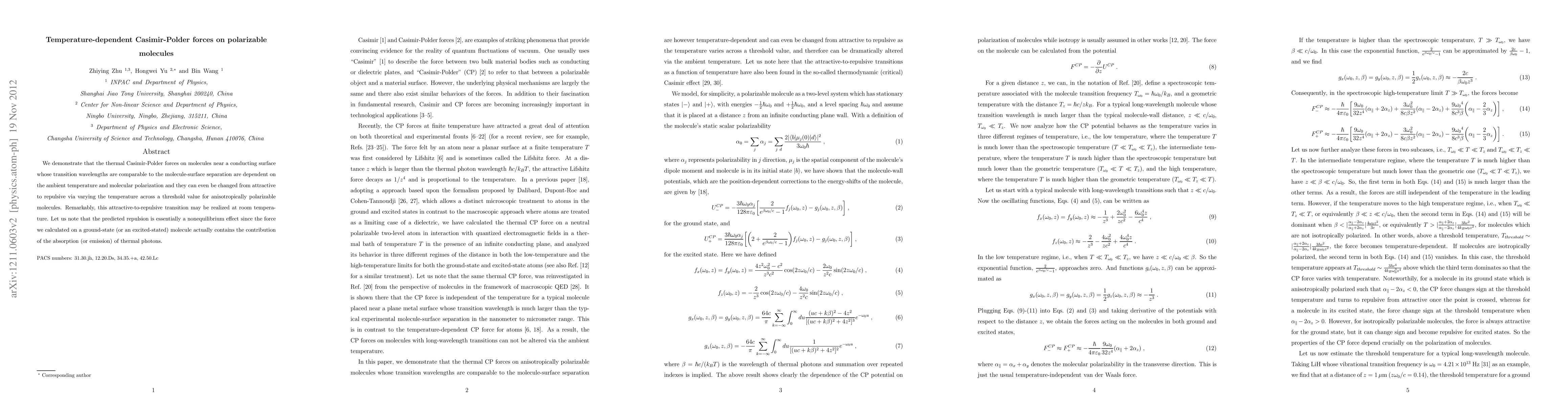 This paper demonstrates that thermal Casimir-Polder forces on polarizable molecules near a conducting surface change from attractive to repulsive by varying the ambient temperature, a phenomenon achievable even at room temperature due to molecular polarization effects. The calculated forces incorporate contributions from thermal photon absorption or emission, indicating a nonequilibrium effect.