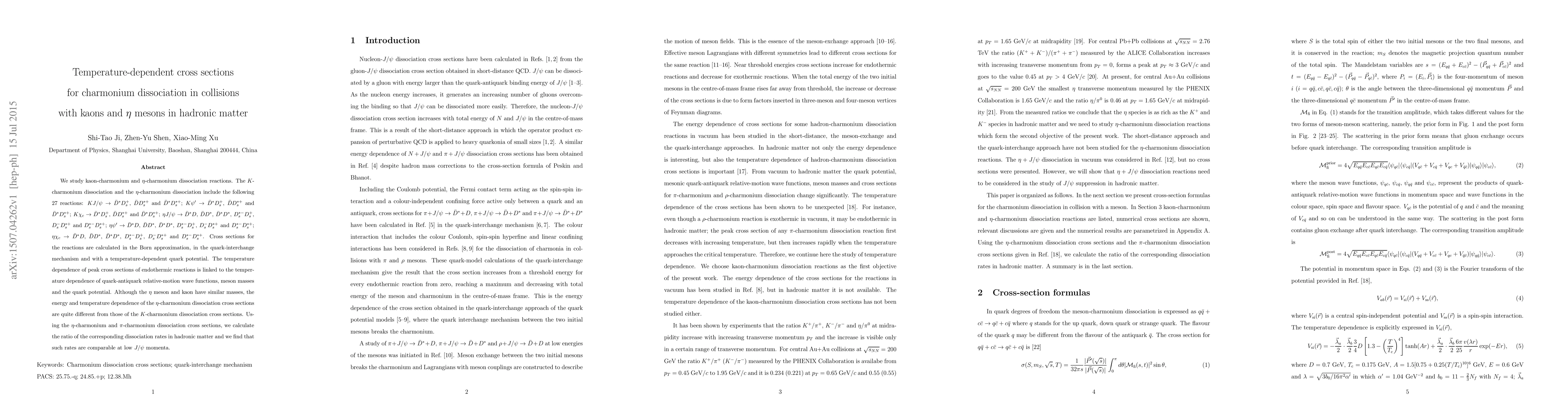 This paper investigates the temperature-dependent cross sections for charmonium dissociation in reactions with kaons and eta mesons, revealing distinct energy and temperature dependencies in the dissociation processes despite similar meson masses. The study finds comparable dissociation rates for eta-charmonium and pion-charmonium at low J/psi momenta.