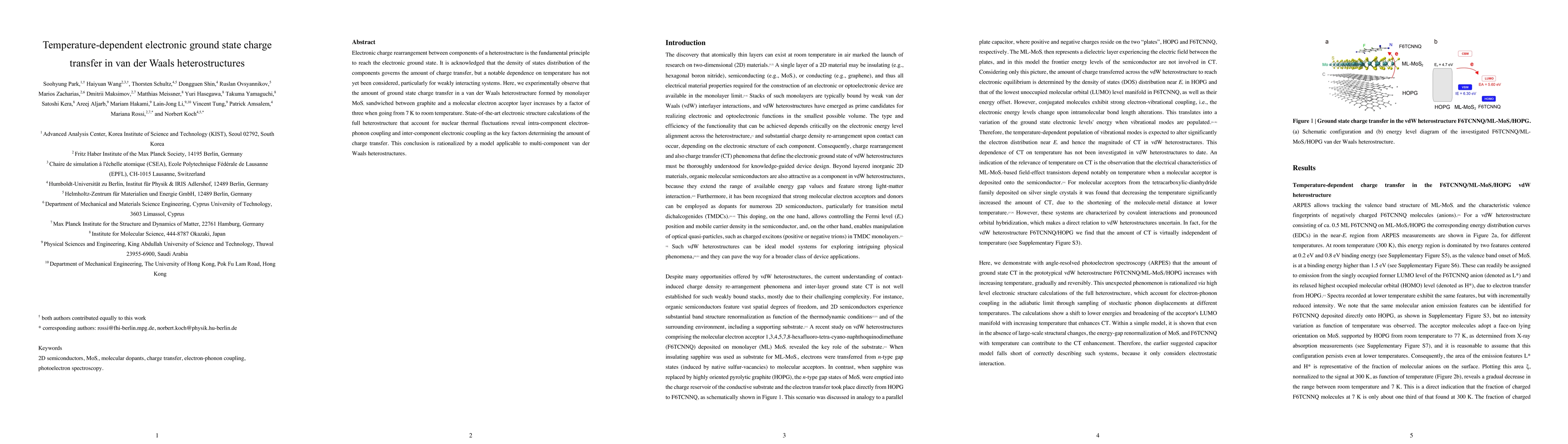 This research investigates the temperature-dependent charge transfer in a van der Waals heterostructure of monolayer MoS2 between graphite and a molecular electron acceptor. Experimental observations reveal a threefold increase in ground state charge transfer from 7 K to room temperature, while electronic structure calculations identify electron-phonon and electronic couplings as crucial factors.
