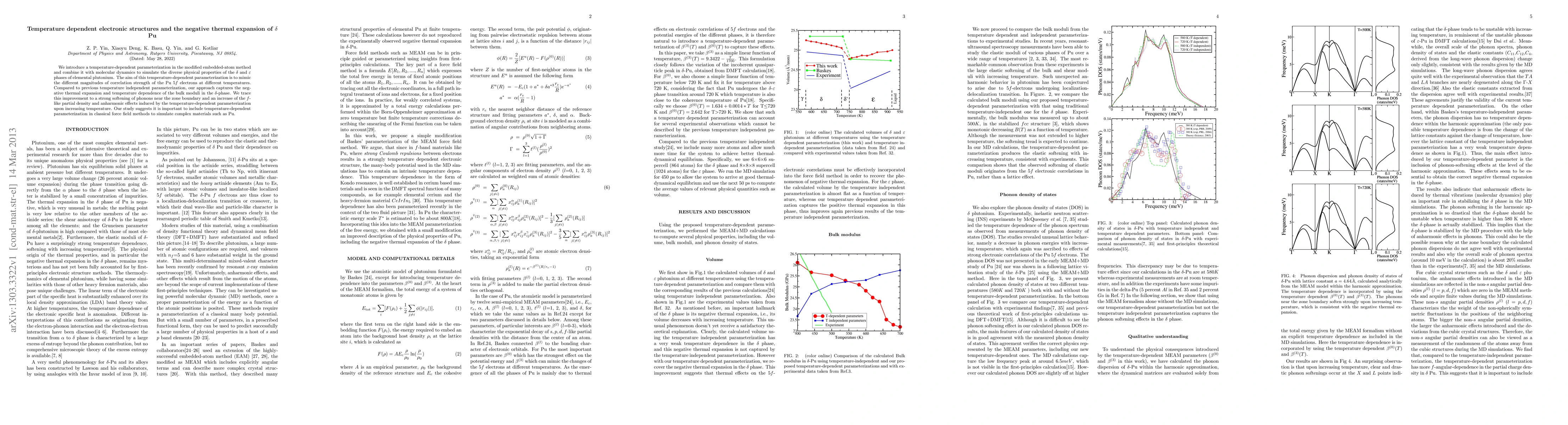 This paper introduces a temperature-dependent parameterization in the modified embedded-atom method to simulate the electronic structures and properties of plutonium's \delta-phase. The new approach captures the negative thermal expansion and temperature dependence of bulk moduli, attributing these improvements to phonon softening and increased f-like partial density.