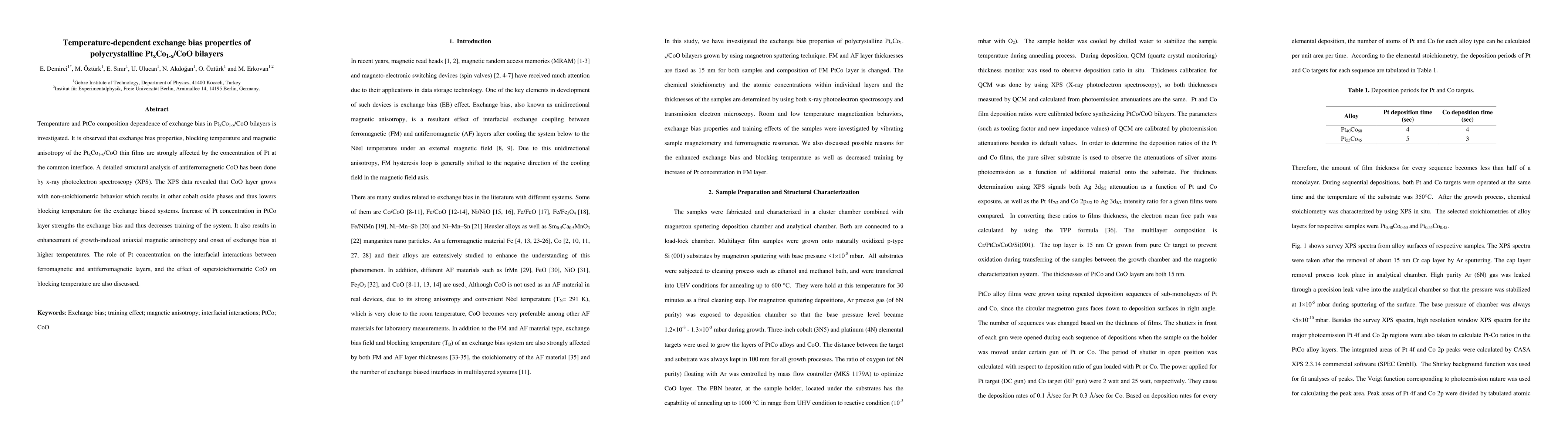 This study investigates the impact of temperature and PtCo composition on exchange bias in PtxCo1-x/CoO bilayers, finding that Pt concentration enhances exchange bias, reduces training effects, and increases magnetic anisotropy, while non-stoichiometric CoO layers lower blocking temperature.