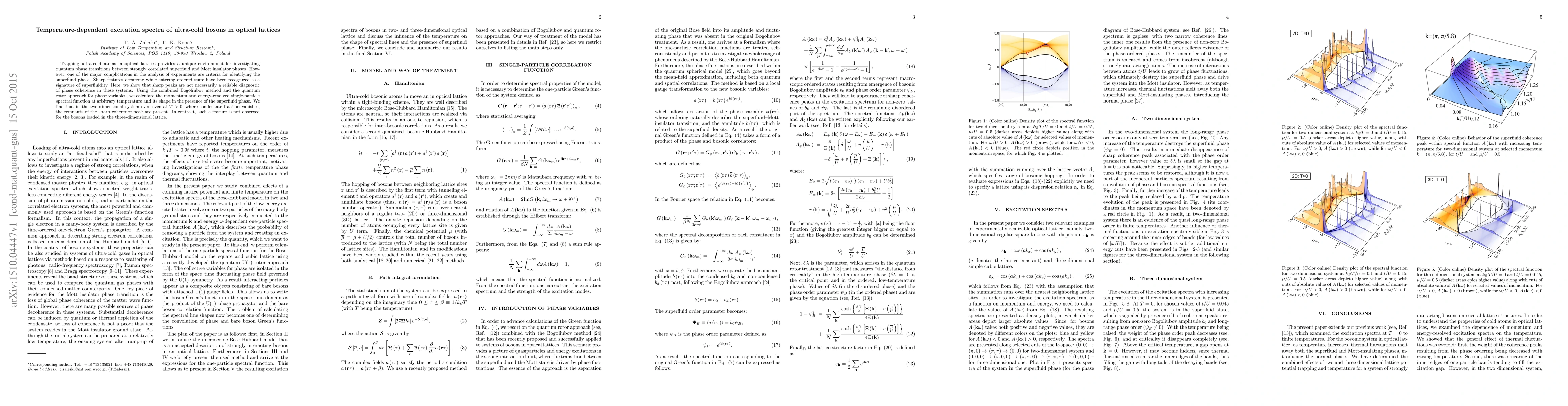 This paper investigates the temperature-dependent excitation spectra of ultra-cold bosons in optical lattices, revealing that sharp peaks in the spectral function are not reliable indicators of superfluidity. The study finds that remnants of sharp coherence peaks persist in two-dimensional systems even at non-zero temperatures, unlike in three-dimensional systems.