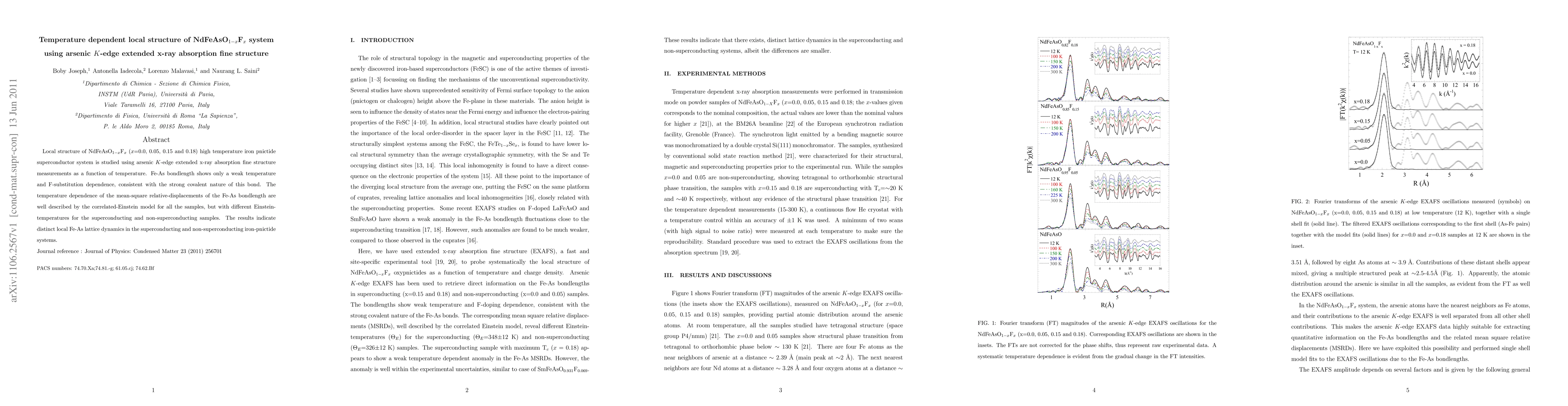 This study uses arsenic K-edge extended x-ray absorption fine structure to analyze the local structure of NdFeAsO$_{1-x}$F$_{x}$ superconductors at varying temperatures. The Fe-As bond length exhibits minimal temperature and fluorine substitution effects, highlighting its strong covalent nature, while the Fe-As bond's temperature dependence differs between superconducting and non-superconducting samples, indicating distinct local lattice dynamics.