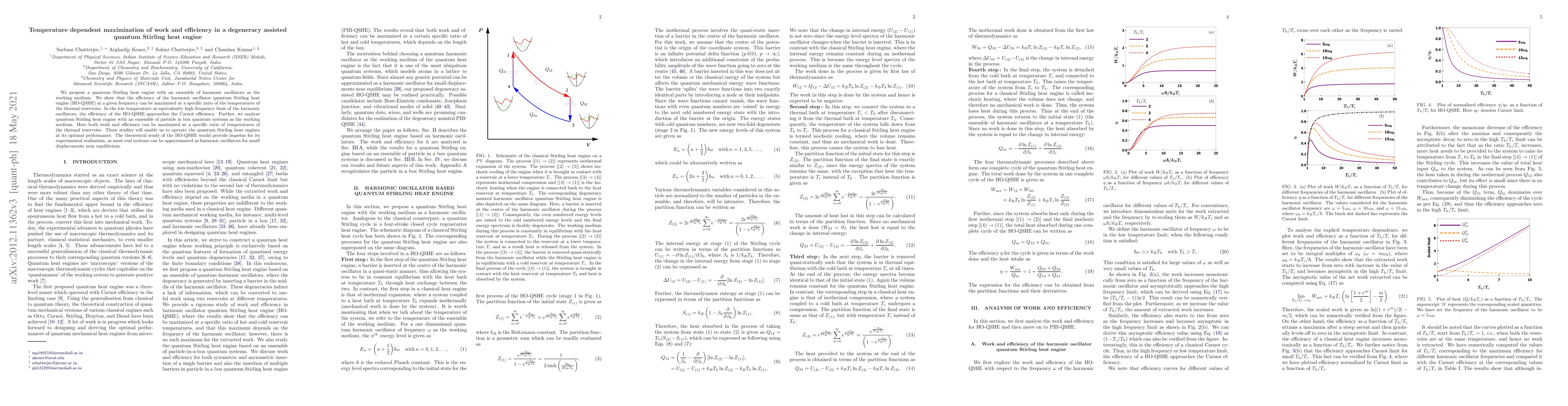 This paper proposes a quantum Stirling heat engine using harmonic oscillators and particle-in-box systems, demonstrating that both work and efficiency can be maximized at specific temperature ratios, approaching Carnot efficiency at high frequencies. The study aims to optimize quantum Stirling engine performance and inspire experimental realizations.