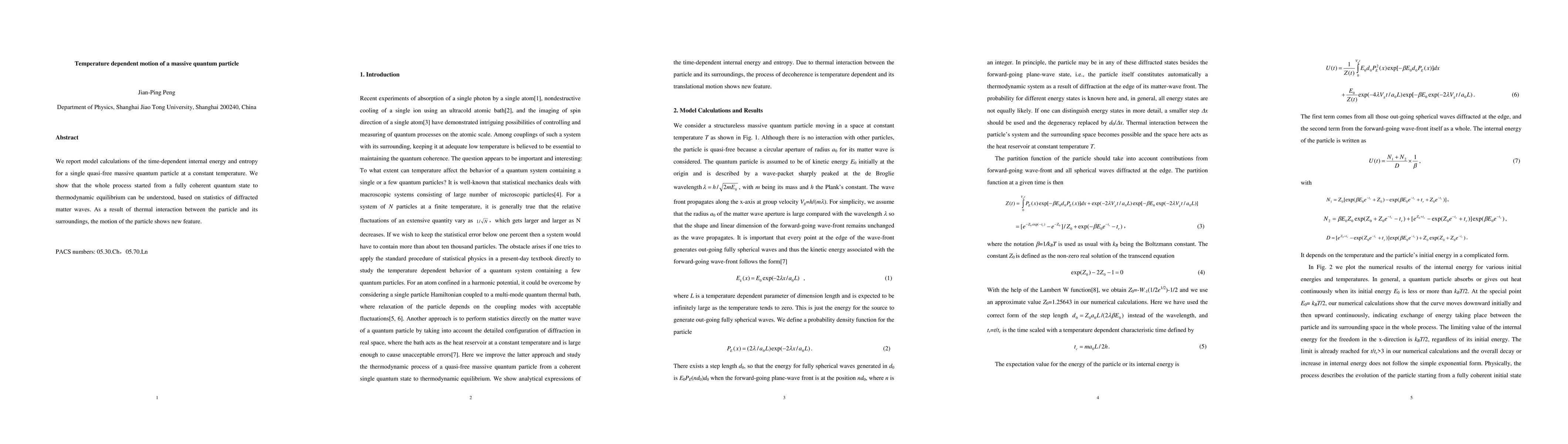 This paper investigates the temperature-dependent motion of a massive quantum particle transitioning from a coherent quantum state to thermodynamic equilibrium, revealing new features in its motion through statistical analysis of diffracted matter waves.