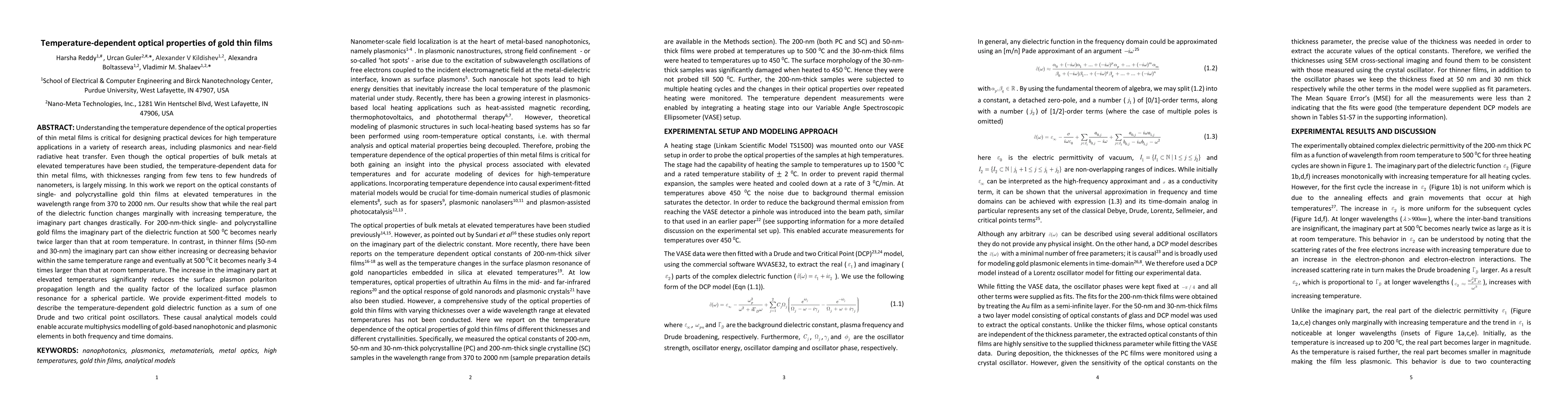 The paper presents experiment-fitted models describing the temperature-dependent gold dielectric function as a sum of one Drude and two Critical Point oscillators, which can be used for accurate multiphysics modeling of gold-based nanophotonic and plasmonic elements in both frequency and time domains.