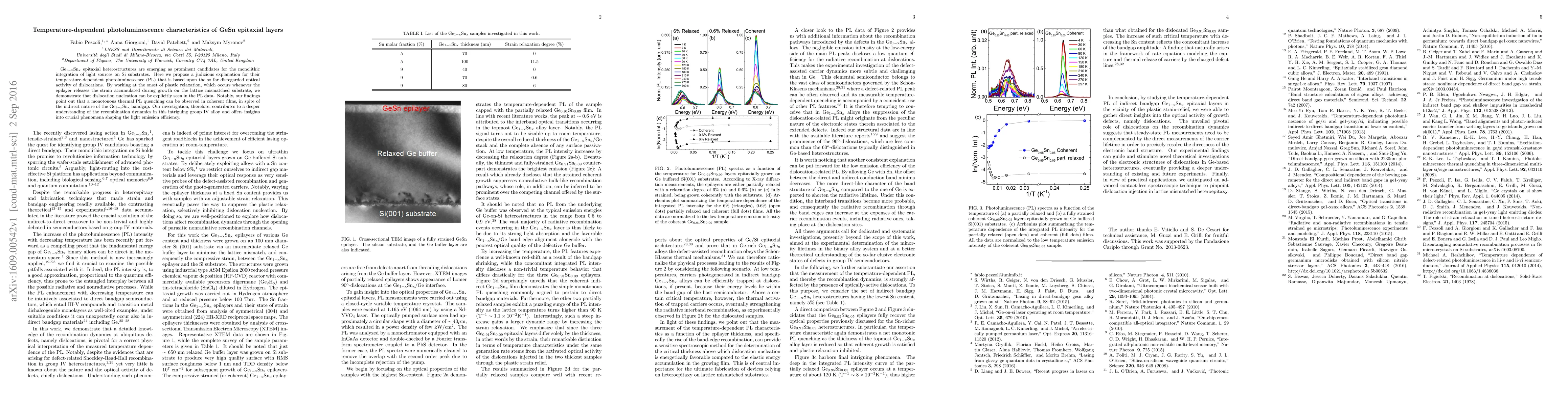 This paper investigates the temperature-dependent photoluminescence of GeSn epitaxial layers, attributing observed thermal quenching to dislocation nucleation due to plastic relaxation. The study highlights the optical activity of dislocations and provides insights into the recombination dynamics in GeSn alloys.