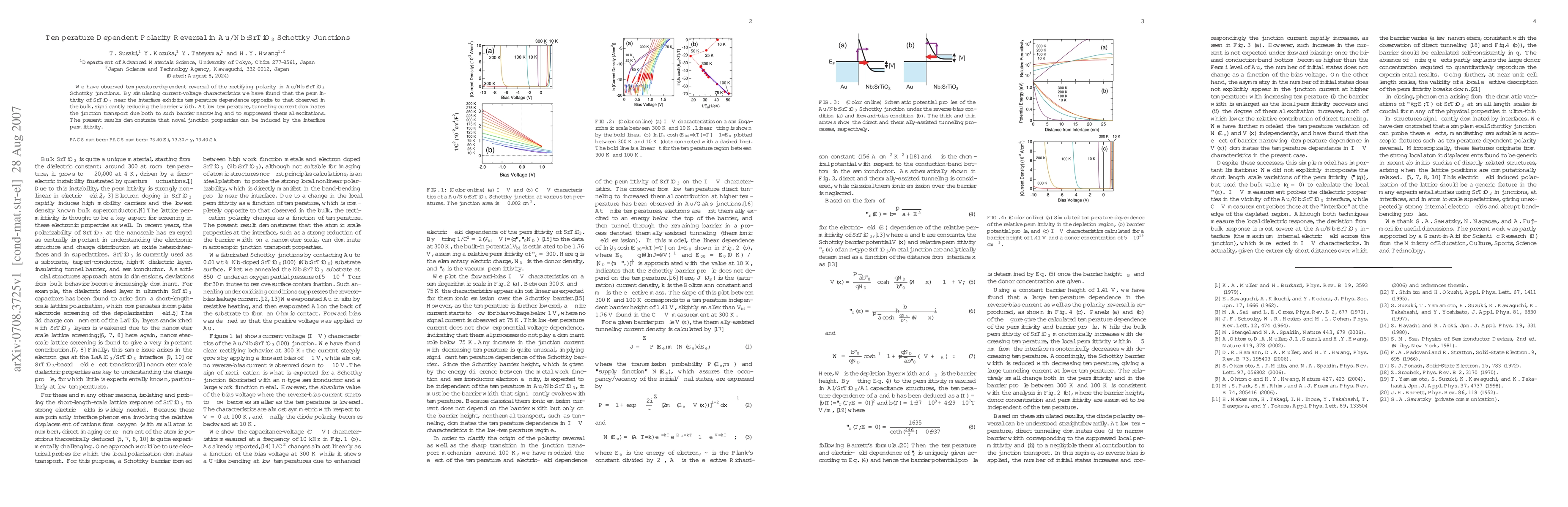 This study reveals a temperature-dependent polarity reversal in Au/Nb:SrTiO3 Schottky junctions, where the interface permittivity exhibits an opposite temperature dependence to the bulk, reducing the barrier width. At low temperatures, tunneling current dominates due to barrier narrowing and suppressed thermal excitations, showcasing how interface permittivity can induce novel junction properties.