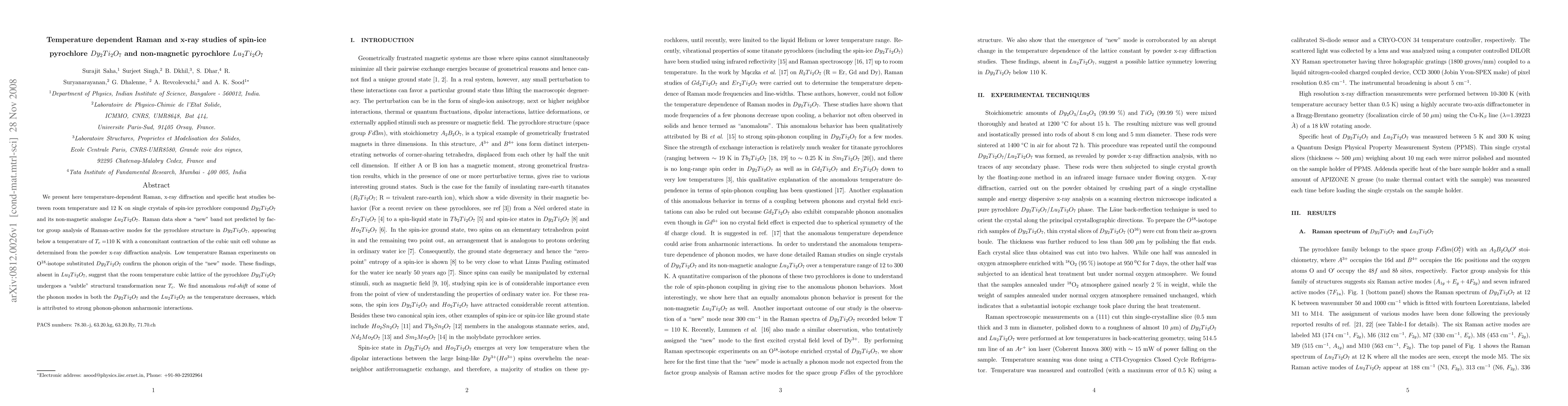 Researchers studied temperature-dependent properties of spin-ice pyrochlore compounds $Dy_2Ti_2O_7$ and $Lu_2Ti_2O_7$, finding a 'new' Raman band in $Dy_2Ti_2O_7$ that appears below 110K, attributed to a subtle structural transformation.