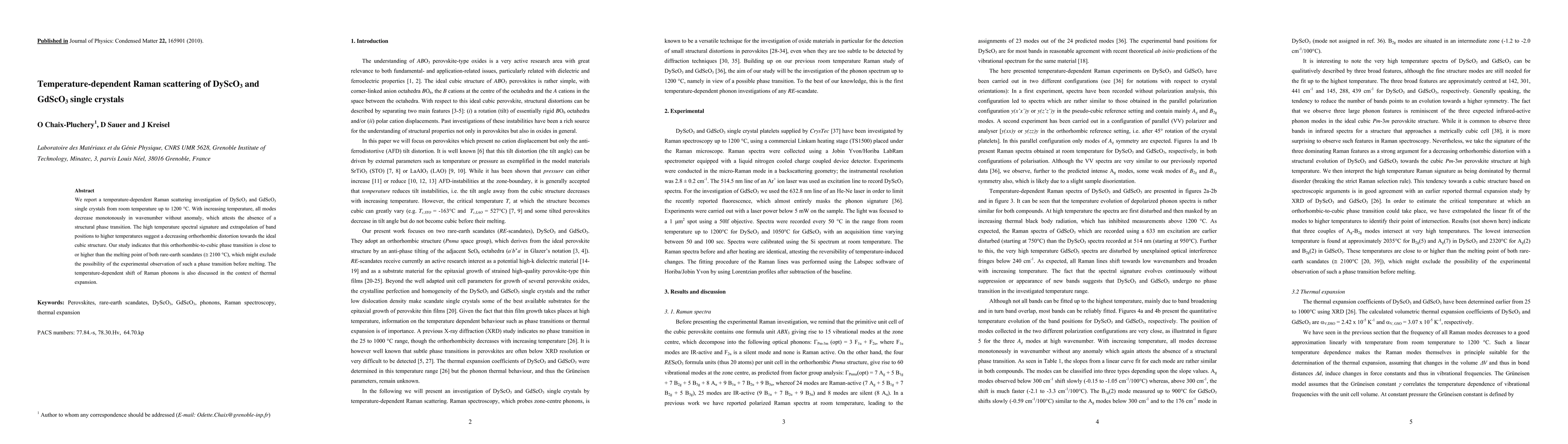 This study investigates the temperature-dependent Raman scattering of DyScO3 and GdScO3 single crystals, revealing a consistent decrease in all Raman modes without anomalies, indicating no structural phase transition. The findings suggest that the orthorhombic-to-cubic phase transition occurs above the melting point, making it unlikely to observe before melting.