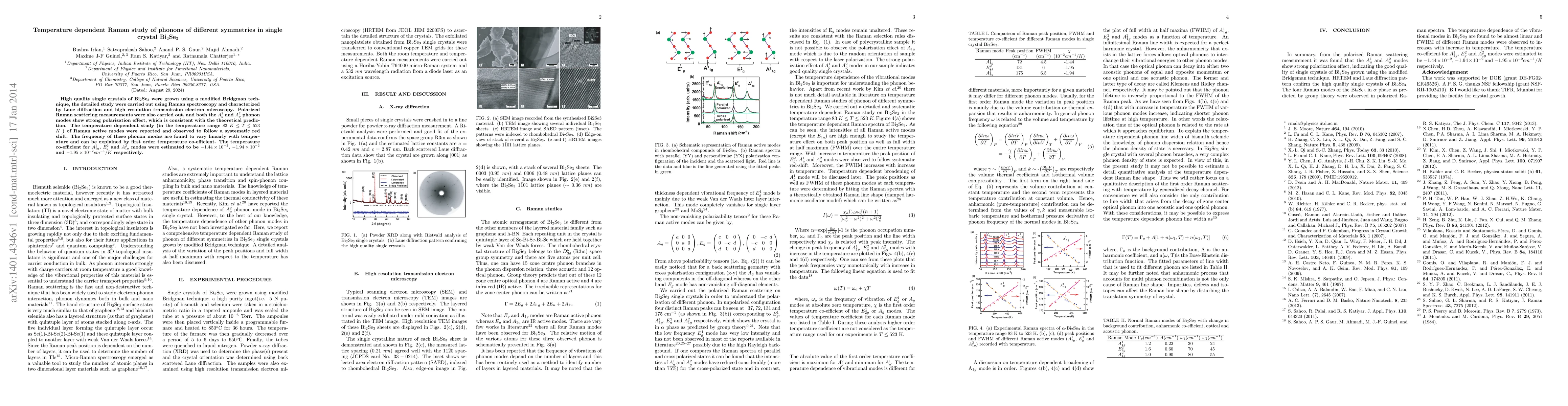 High quality single crystals of Bi2Se3 were grown using a modified Bridgman technique, the detailed study were carried out using Raman spectroscopy and characterized by Laue diffraction and high resolution transmission electron microscopy. Polarized Raman scattering measurements were also carried out, and both the A1g and A2g phonon modes showed strong polarization effect, which is consistent with the theoretical prediction. The temperature dependent study (in the temperature range 83 K to 523 K of Raman active modes were reported and observed to follow a systematic red shift. The frequency of these phonon modes are found to vary linearly with temperature and can be explained by first order temperature co-efficient. The temperature co-efficient for A11g, E2g and A21g modes were estimated to be -1.44*10-2, -1.94*10-2 and -1.95*10-2cm-1/K respectively.