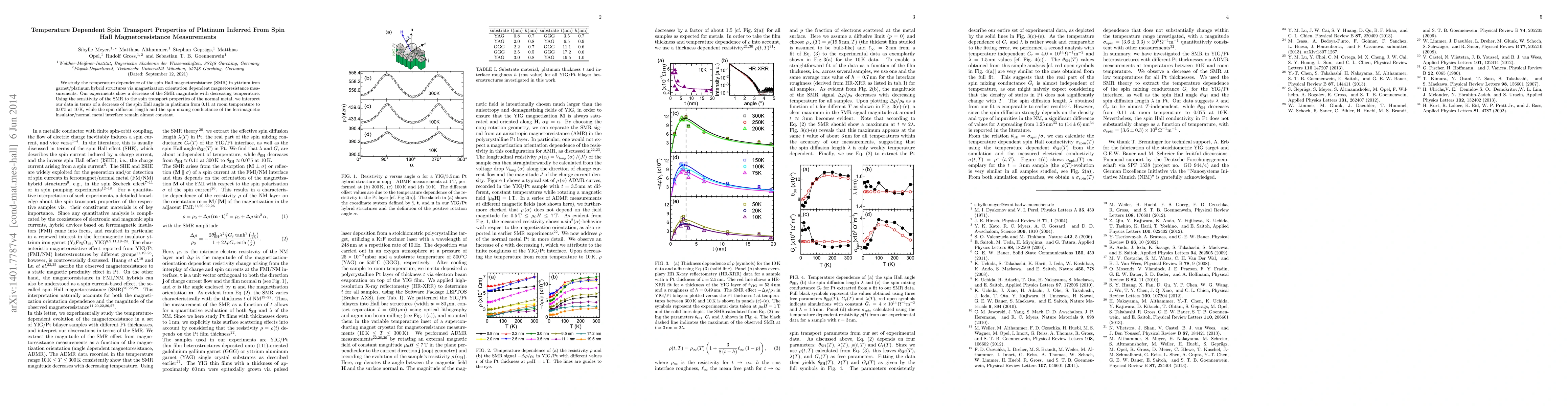 We study the temperature dependence of the spin Hall magnetoresistance (SMR) in yttrium iron garnet/platinum hybrid structures via magnetization orientation dependent magnetoresistance measurements. Our experiments show a decrease of the SMR magnitude with decreasing temperature. Using the sensitivity of the SMR to the spin transport properties of the normal metal, we interpret our data in terms of a decrease of the spin Hall angle in platinum from 0.11 at room temperature to 0.075 at 10K, while the spin diffusion length and the spin mixing conductance of the ferrimagnetic insulator/normal metal interface remain almost constant.
