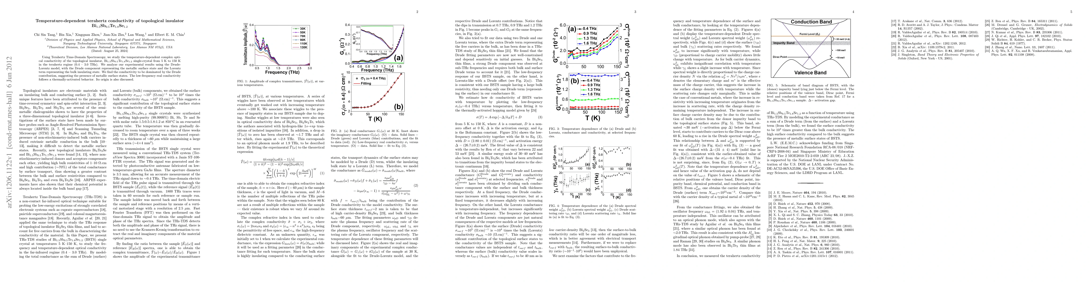 This study investigates the temperature-dependent terahertz conductivity of the topological insulator Bi$_{1.5}$Sb$_{0.5}$Te$_{1.8}$Se$_{1.2}$ using Terahertz Time-Domain Spectroscopy. The results show that the conductivity is primarily dominated by metallic surface states, with a thermally-activated behavior at low frequencies.