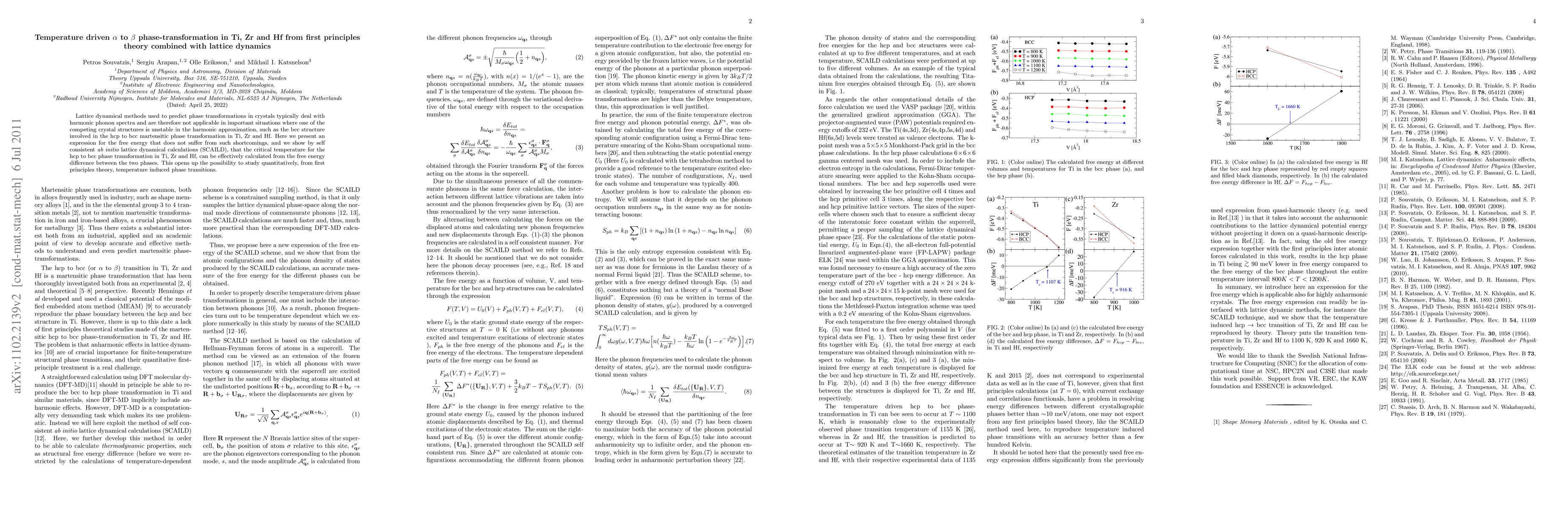 Lattice dynamical methods used to predict phase transformations in crystals typically deal with harmonic phonon spectra and are therefore not applicable in important situations where one of the competing crystal structures is unstable in the harmonic approximation, such as the bcc structure involved in the hcp to bcc martensitic phase transformation in Ti, Zr and Hf. Here we present an expression for the free energy that does not suffer from such shortcomings, and we show by self consistent {\it ab initio} lattice dynamical calculations (SCAILD), that the critical temperature for the hcp to bcc phase transformation in Ti, Zr and Hf, can be effectively calculated from the free energy difference between the two phases. This opens up the possibility to study quantitatively, from first principles theory, temperature induced phase transitions.