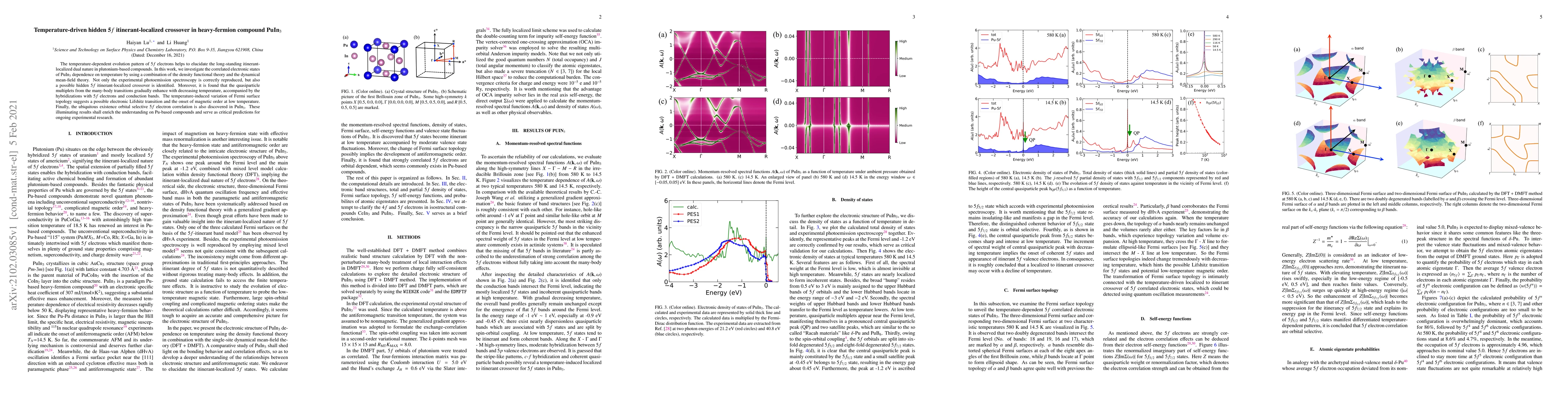 This paper investigates the temperature-driven 5f electron behavior in the heavy-fermion compound PuIn3, revealing a hidden itinerant-localized crossover and identifying enhanced quasiparticle multiplets with decreasing temperature. The study combines theoretical and experimental methods, suggesting a potential electronic Lifshitz transition and magnetic order at low temperatures.