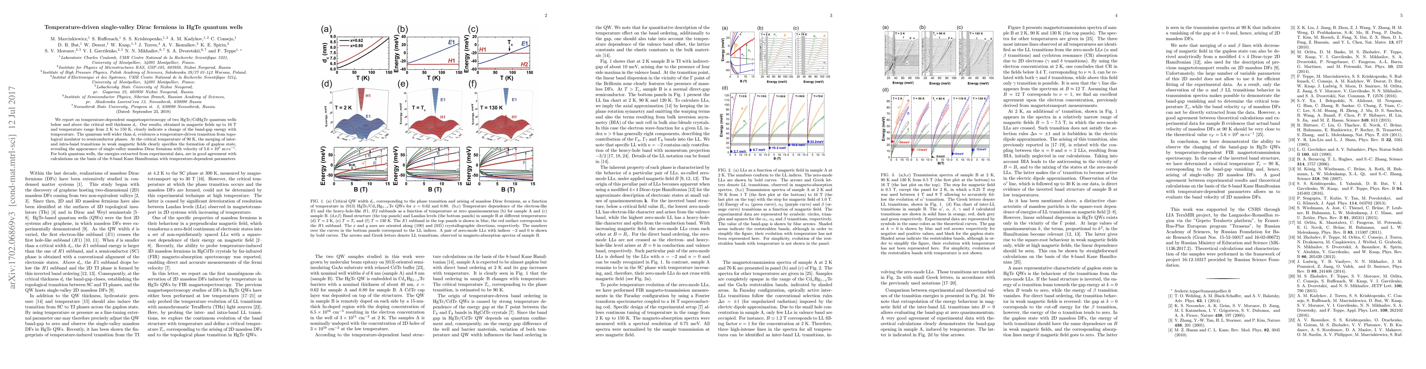 This research investigates temperature-driven phase transitions in HgTe quantum wells, revealing a transition from topological insulator to semiconductor phases above a critical well thickness. At a critical temperature of 90 K, single-valley Dirac fermions emerge, characterized by a high velocity of $5.6\times10^5$ m$\times$s$^{-1}$.