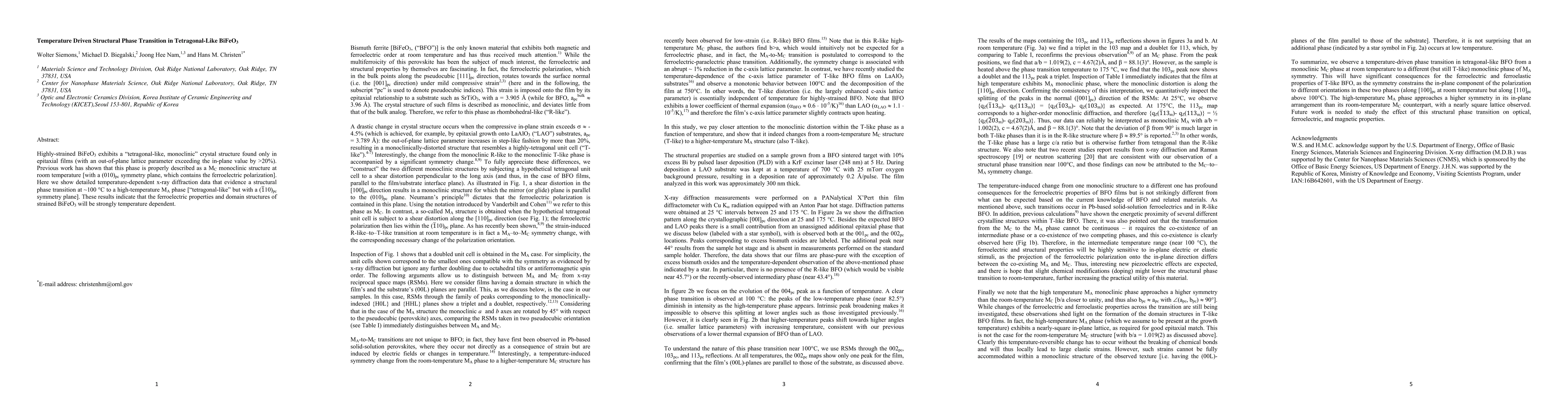This study investigates the temperature-driven structural phase transition in highly-strained tetragonal-like BiFeO$_3$ epitaxial films, revealing a transition at ~100°C from a M$_{C}$ monoclinic to an M$_{A}$ phase, impacting the ferroelectric properties and domain structures.