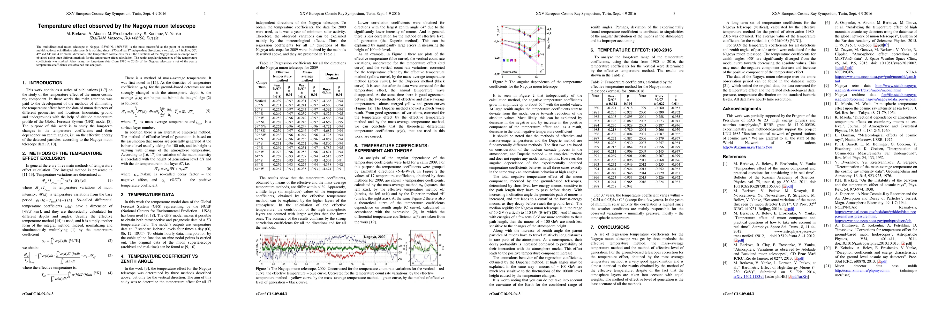 Summary: This study measures the temperature coefficients for the Nagoya muon telescope in all directions, focusing on the zenith angular dependence to understand how temperature affects muon detection.