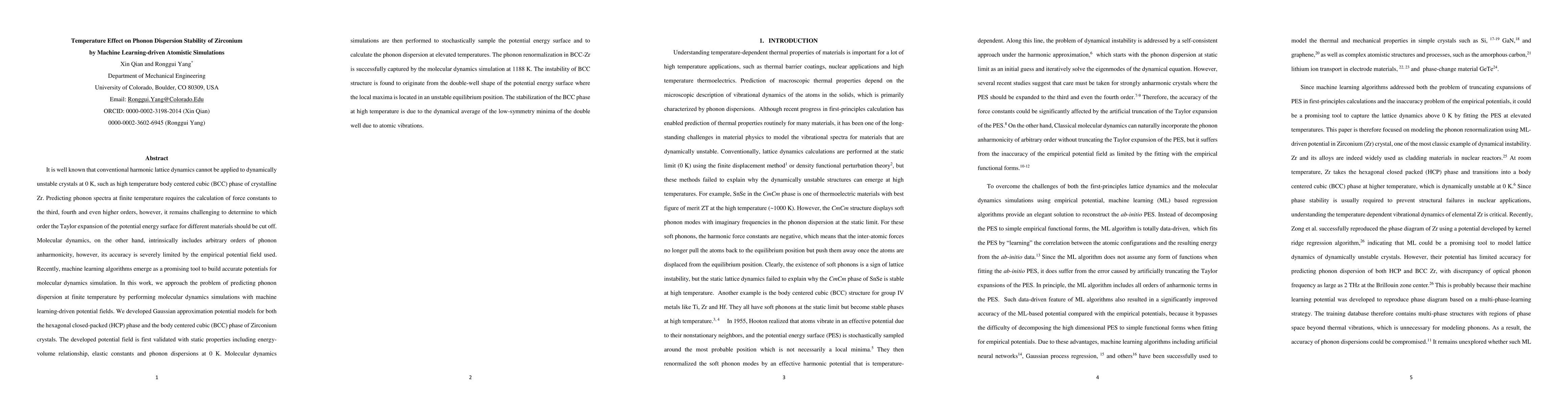 It is well known that conventional harmonic lattice dynamics cannot be applied to energetically unstable crystals at 0 K, such as high temperature body centered cubic (BCC) phase of crystalline Zr. Predicting phonon spectra at finite temperature requires the calculation of force constants to the third, fourth and even higher orders, however, it remains challenging to determine to which order the Taylor expansion of the potential energy surface for different materials should be cut off. Molecular dynamics, on the other hand, intrinsically includes arbitrary orders of phonon anharmonicity, however, its accuracy is severely limited by the empirical potential field used. Using machine learning method, we developed an inter-atomic potential for Zirconium crystals for both the hexagonal closed-packed (HCP) phase and the body centered cubic phase. The developed potential field accurately captures energy-volume relationship, elastic constants and phonon dispersions. The instability of BCC structure is found to originate from the double-well shape of the potential energy surface where the local maxima is located in an unstable equilibrium position. The stabilization of the BCC phase at high temperature is due to the dynamical average of the low-symmetry minima of the double well due to atomic vibrations. Molecular dynamics simulations are then performed to stochastically sample the potential energy surface and to calculate the phonon dispersion at elevated temperature. The phonon renormalization in BCC-Zr is successfully captured by the molecular dynamics simulation at 1188 K.
